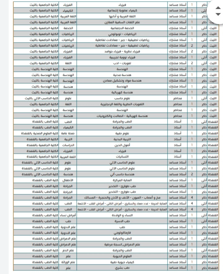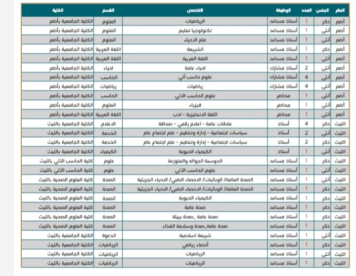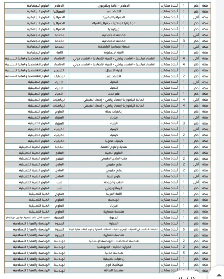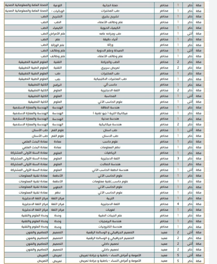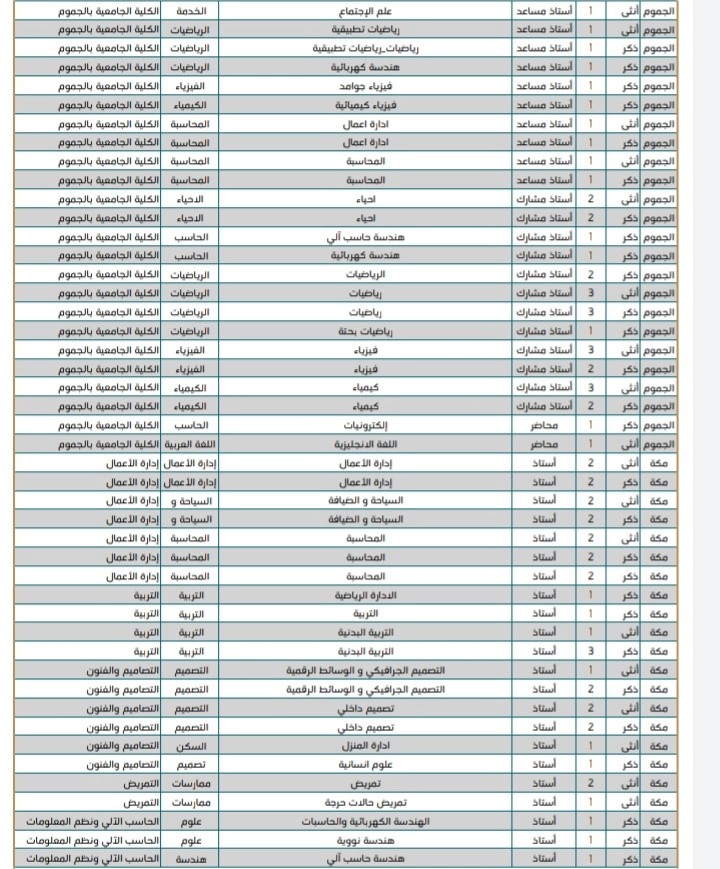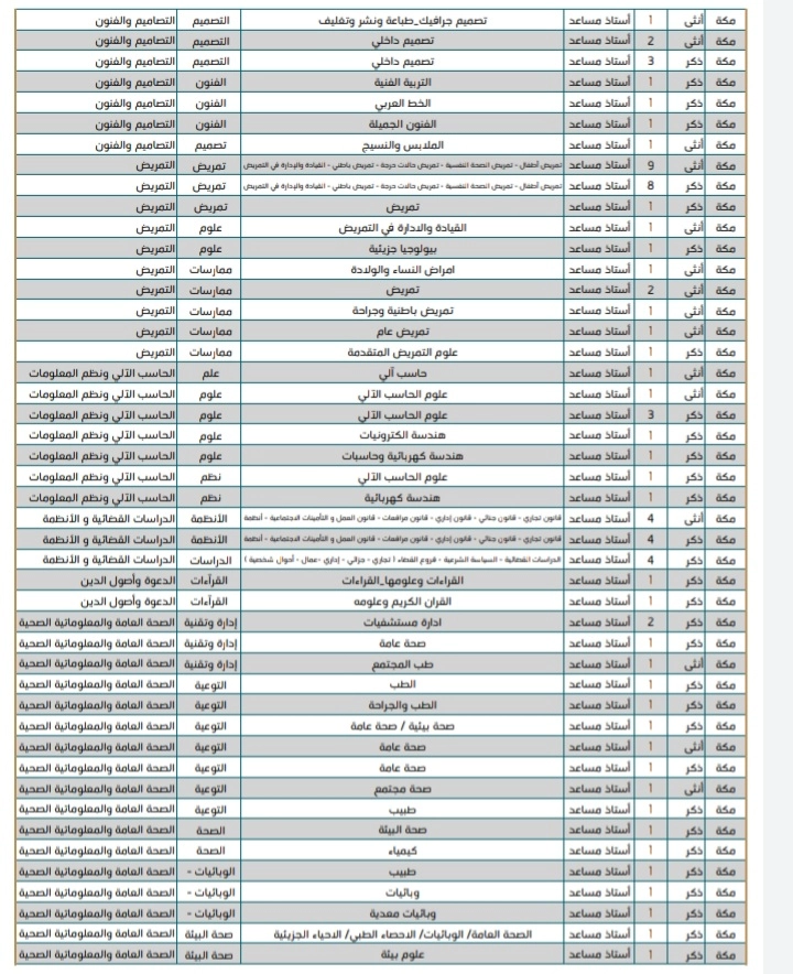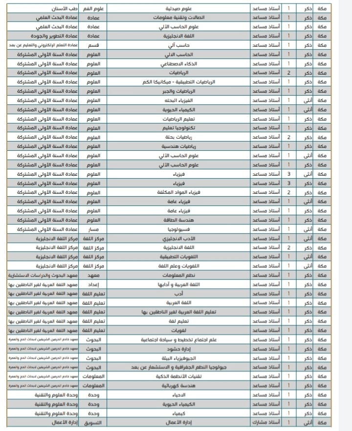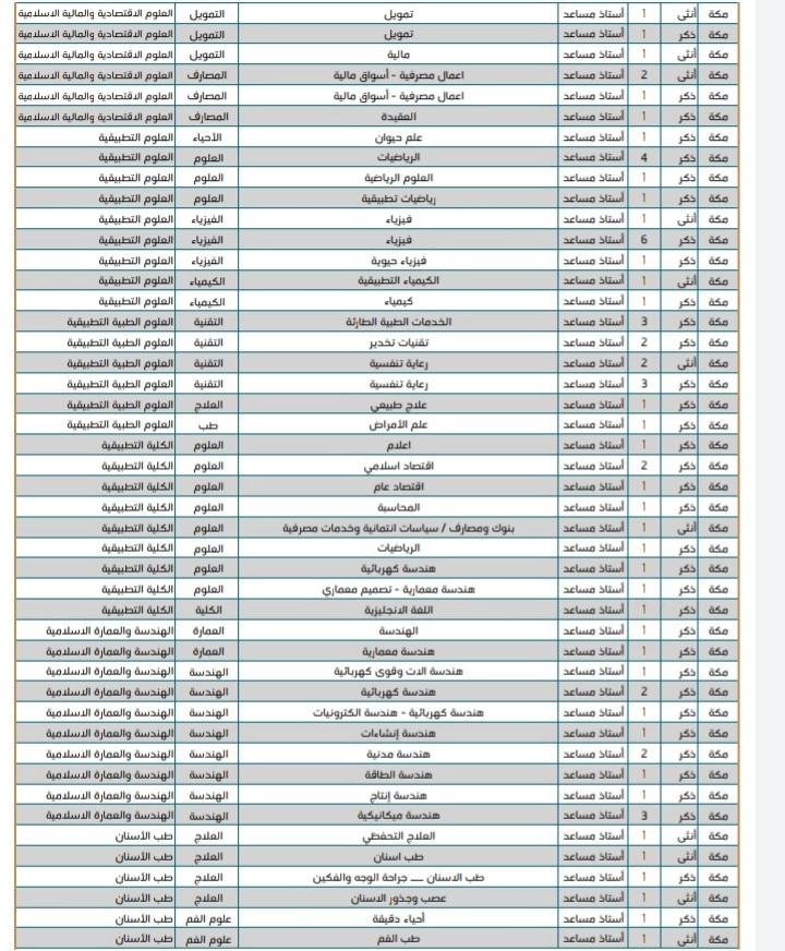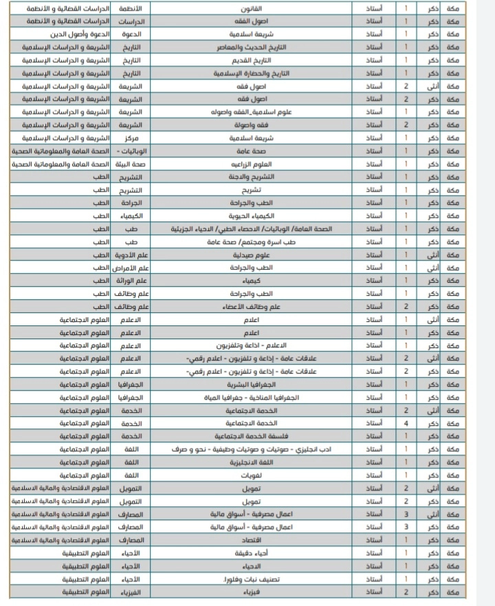 المسميات الوظيفية المعلنة لوظائف جامعة أم القرى السعودية