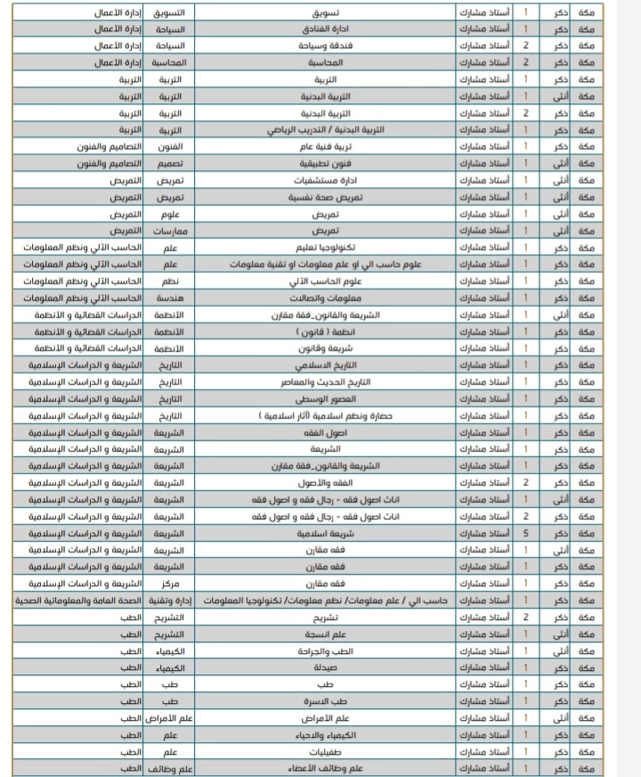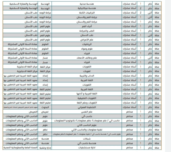 أصدرت بوابة التوظيف جامعة أم القرى عن ٨٥٦ وظيفة شاغرة متنوعة في التخصصات الآتية: