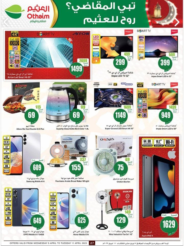 أحصل الأن على أضخم العروض الرمضانية من أسواق العثيم في كافة فروعه في المملكة العربية السعودية، عروض مدهشة وجبارة على مختلف أنواع الشاشات الذكية والأجهزة الذكية والهواتف، سارعوا الأن قبل نفاذ الكميات واحصلوا على أرقى الأجهزة بأقل الاسعار .