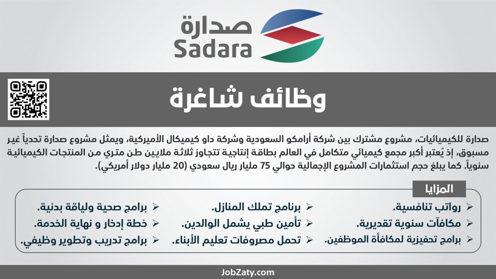 تم الاعلان من قبل شركة أرامكو عن توافر فرص عمل فورية في شركة صدارة لكل حاملين البكالوريوس وفي أكثر من تخصص وهذا طبقا لما تم نقله من قبل موقع الشركة الإلكتروني الرسمي، تابعوا معي لنتعرف على بعض التفاصيل حيث أن تلك الوظائف جاءت ضمن الخطط الخاصة بالشركة من أجل تطوير قدرتها على زيادة الإنتاج، اليكم التفاصيل .