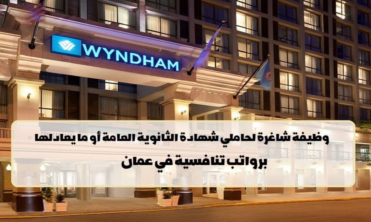أعلنت فنادق ويندهام في سلطنة عمان عن حاجتها لعدد من حملة مؤهل الثانوية العامة فأعلى ويفضل اصحاب الخبرة المسبقة في المجالات المطلوبة مع العلم بان هذه الوظائف متاحة لكل من المواطنين والمقيمين في السلطنة وسنستعرض لكم فيما يلي تفاصيل الوظائف الشاغرة .