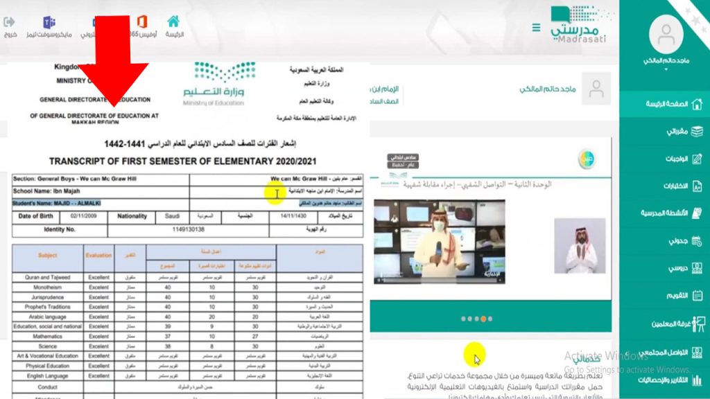 يمكن تحميل شهادة النّتائج من منصّة مدرستي لعام 1443هـ عن طريق اتّباع الخُطوات التالية: