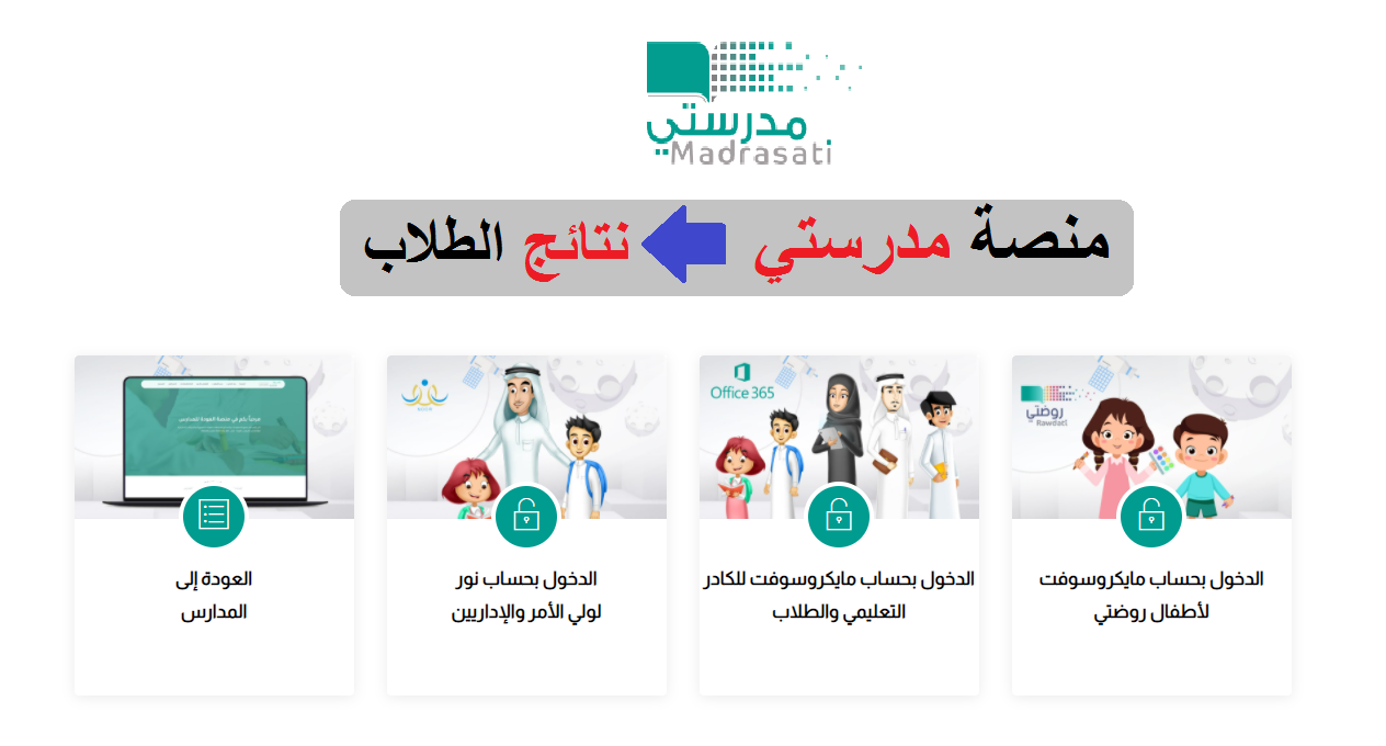 نستطيع الانتقال إلى منصّة مدرستي في المملكة العربيّة السّعوديّة عبر الرّابط “من هنا” مباشرة لتسجيل الدّخول في حساب الطّالب ثمّ الانتقال إلى التّقويم والاستعلام عن نتيجة الطّلبة في التّعليم العامّ.