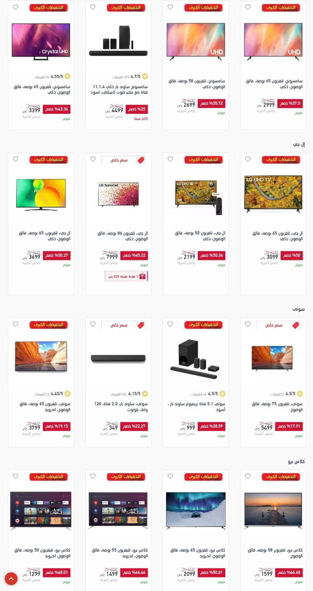 حيث انخفض سعر شاشة سامسونج الشهيرة ب65 بوصة بنسبة 37,0٪ أي من سعر 4799إلى سعر2999، وانخفضت سعر شاشة سامسونج 58 بوصة أيضا ويبلغ سعرها بعد الخصم ب2699