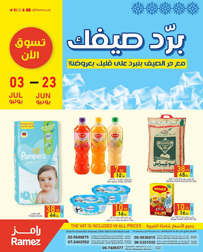 متجر رامز الإمارات من المتاجر الرائدة التي استطاعت أن تلبي احتياجات العملاء من مختلف المنتجات بأسعار لا مثيل لها، الآن يمكن للجميع التسوق في أي وقت لأن عروضه مستمرة طوال الأيام، ولكن يوجد بعض من الأيام تزداد فيها العروض ليصبح العرض عرضين، وبهذا يمكن تحقيق مزيدًا من التوفير، وهنا يأتي واجبنا لأننا سنوفر لكم كل ما تحتاجون له ضمن عروض رامز الإمارات بدأت من 23 يونيو حتى 3 يوليو 2022 والتي تأتي بمفاجآت وهدايا للكثير من العملاء، ثقوا أنكم لن تحتاجون للمقارنة بين عروض المتاجر الأخرى، ثقوا أن عروض رامز في تلك الفترة ستجعلكم تحصلون على جميع المنتجات التي تحتاجون لها مهما كانت بأقل الأسعار .