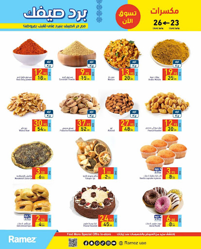 - أفضل العروض والتخفيضات في أسواق رامز الإمارات عروض قسم البقالة، وعروض قسم الحلويات الطازجة التي تعتبر من أهم الأقسام.