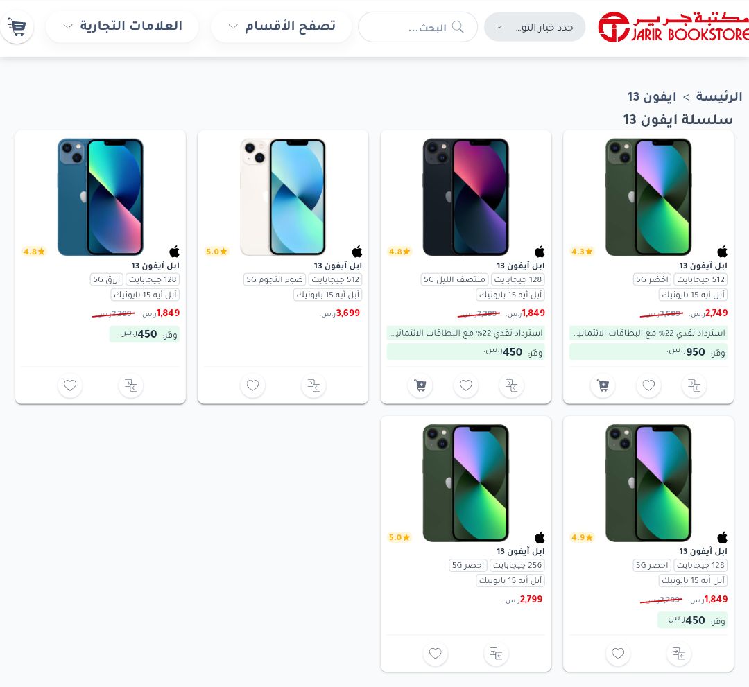 قدمت مكتبة جرير عروضًا مغرية على جهاز آيفون 13 برو ماكس، ويتوفر الآن بنسخة 1 تيرابايت (منتج جدد بدرجة ب) وبسعر بعد تخفيضه وصل إلى 3,303.48 ريال سعودي (بدون سعر ضريبة القيمة المضافة)، وهذا مثل خصمًا بنسبة 47% مقارنة بالسعر الأصلي ظفطقش بحسب ما تم تداوله على وسائل الإعلام .