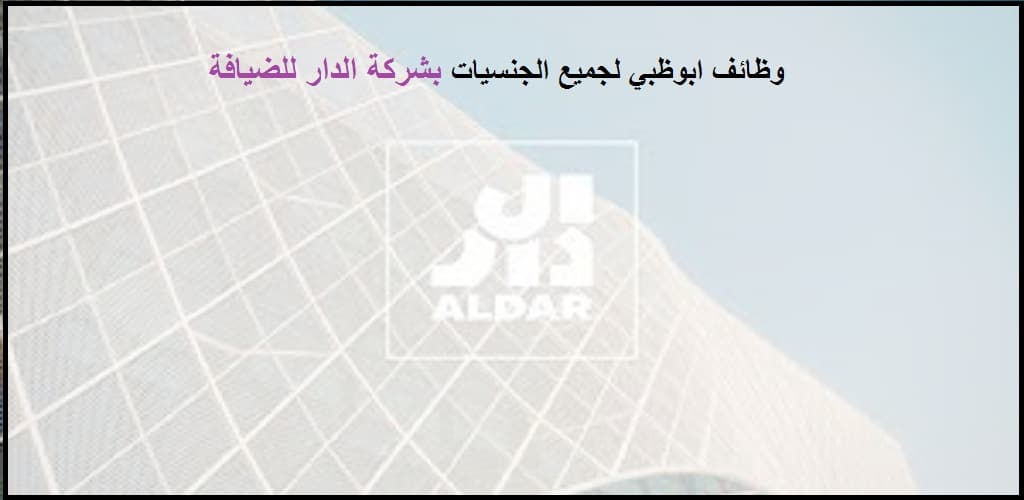 شركة الدار للضيافة في ابوظبي بالإمارات العربية المتحدة اعلنت عن توفر فرص وظيفية شاغرة للعمل بالشركة وذلم حسب عدد من المؤهلات والشروط التي حددتها الشركة للوظائف المعلنة، وفي هذه السطور سوف نعرض لكم مسميات هذه الوظائف وتفاصيلها بالكامل، كما سنطرح لكم رابط التقديم المباشر لهذه الوظائف