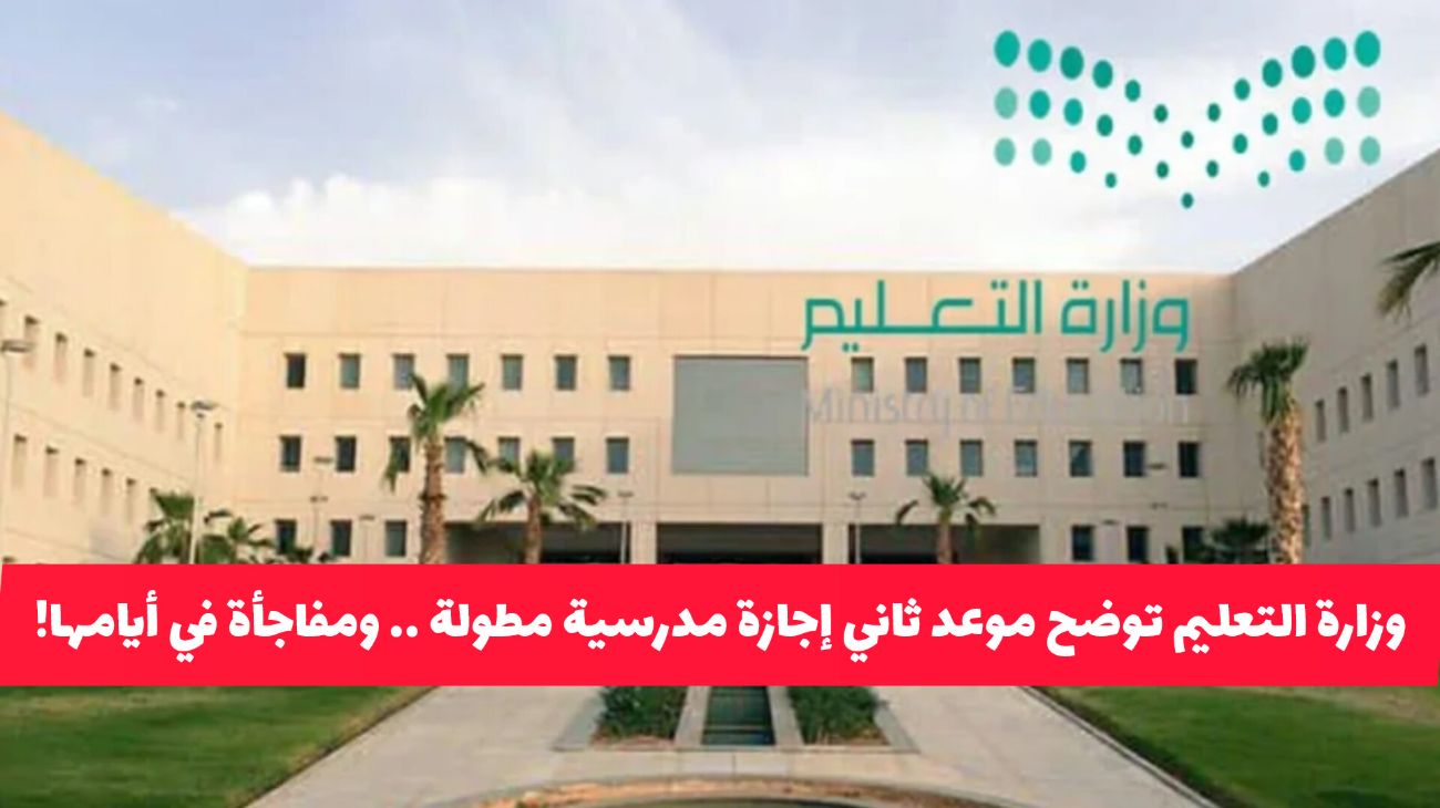تزامناً مع اقتراب نهاية العام الدراسي، أعلنت وزارة التعليم السعودية عن تفاصيل الإجازة المطولة الثانية للطلاب والمعلمين، بينما تستعد لإغلاق آخر مرحلة من نقل المعلمين للعام القادم، في هذا الدليل الشامل، نقدم لك كل ما تحتاج معرفته عن: