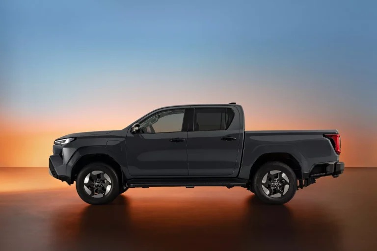 ويكتمل المظهر الرياضي للسيارة بصادم أمامي مزوّد بفتحات هواء زاوية ولوح حماية سفلي، مع جنوط بتصميم رياضي مميز، ومفهوم ثنائي الكابينة يضفي مرونة على الاستخدام اليومي والتجاري على حد سواء.