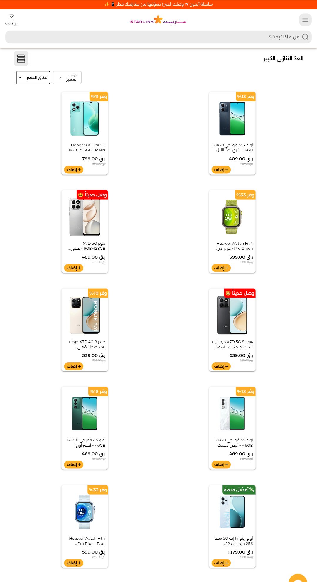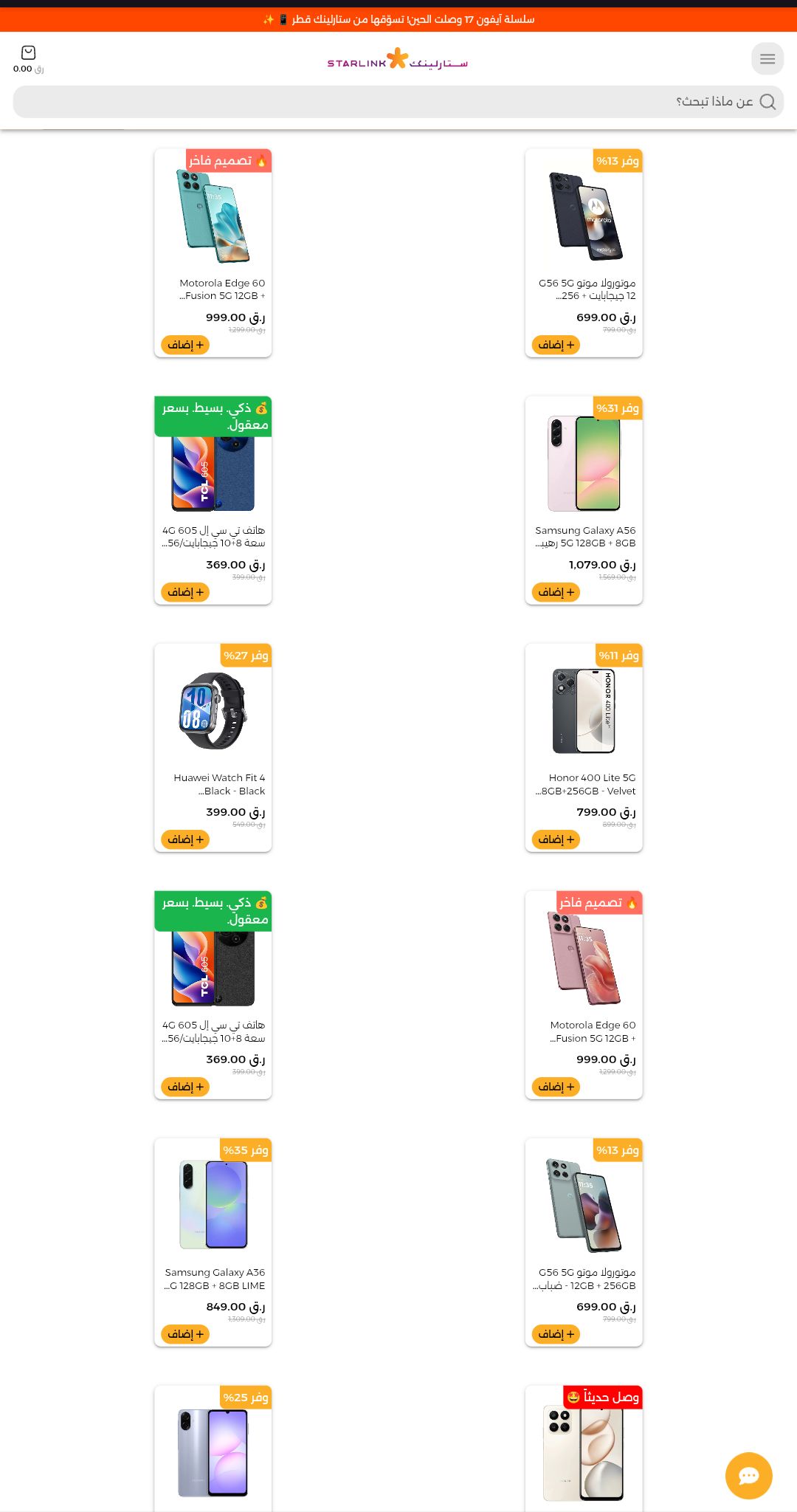 لمحبي الأداء العالي والتصوير الممتاز دون دفع مبالغ طائلة، تقدم ستارلينك قطر تخفيضات قوية على هواتف أونر، موتورولا، وسامسونج.