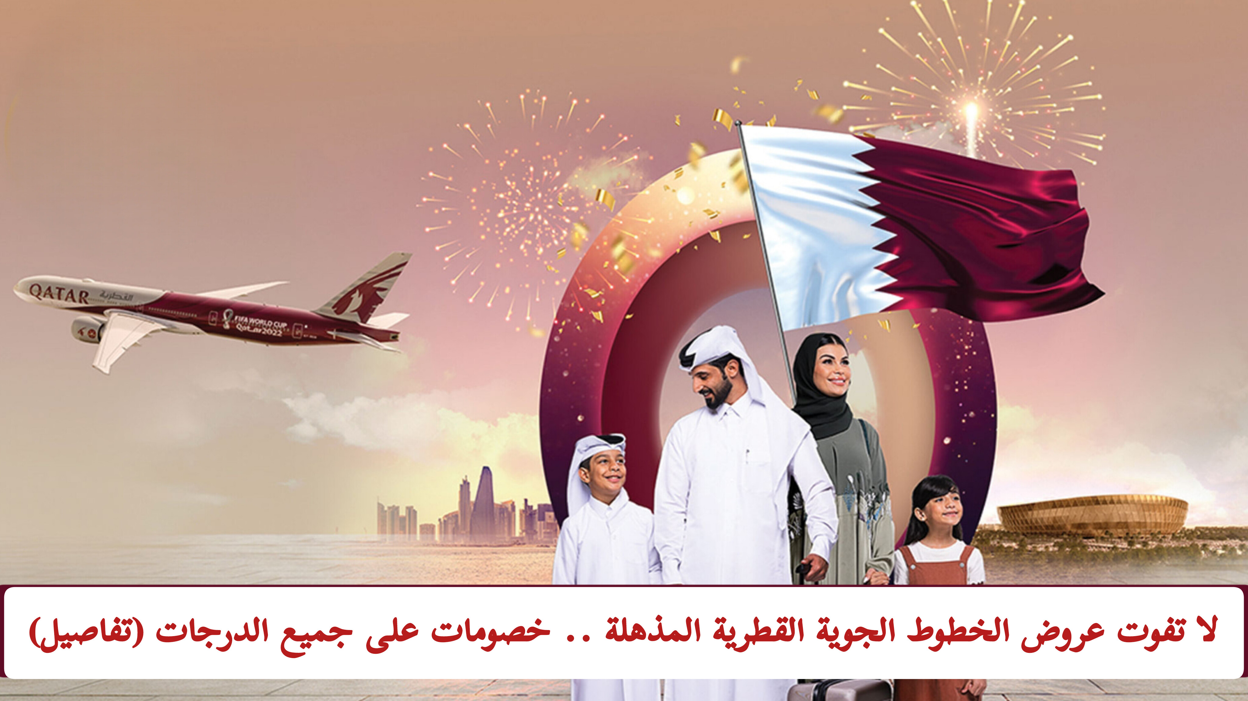 بالتزامن مع احتفالات الدولة بـ اليوم الوطني القطري، كشفت الناقلة الوطنية عن واحدة من أقوى الحملات الترويجية لهذا العام، حيث أعلنت عن عروض الخطوط الجوية القطرية التي تتيح للمسافرين فرصة استثنائية للسفر إلى وجهات عالمية بأسعار مخفضة وخدمات راقية تعكس مكانة الشركة كأفضل شركة طيران في العالم .