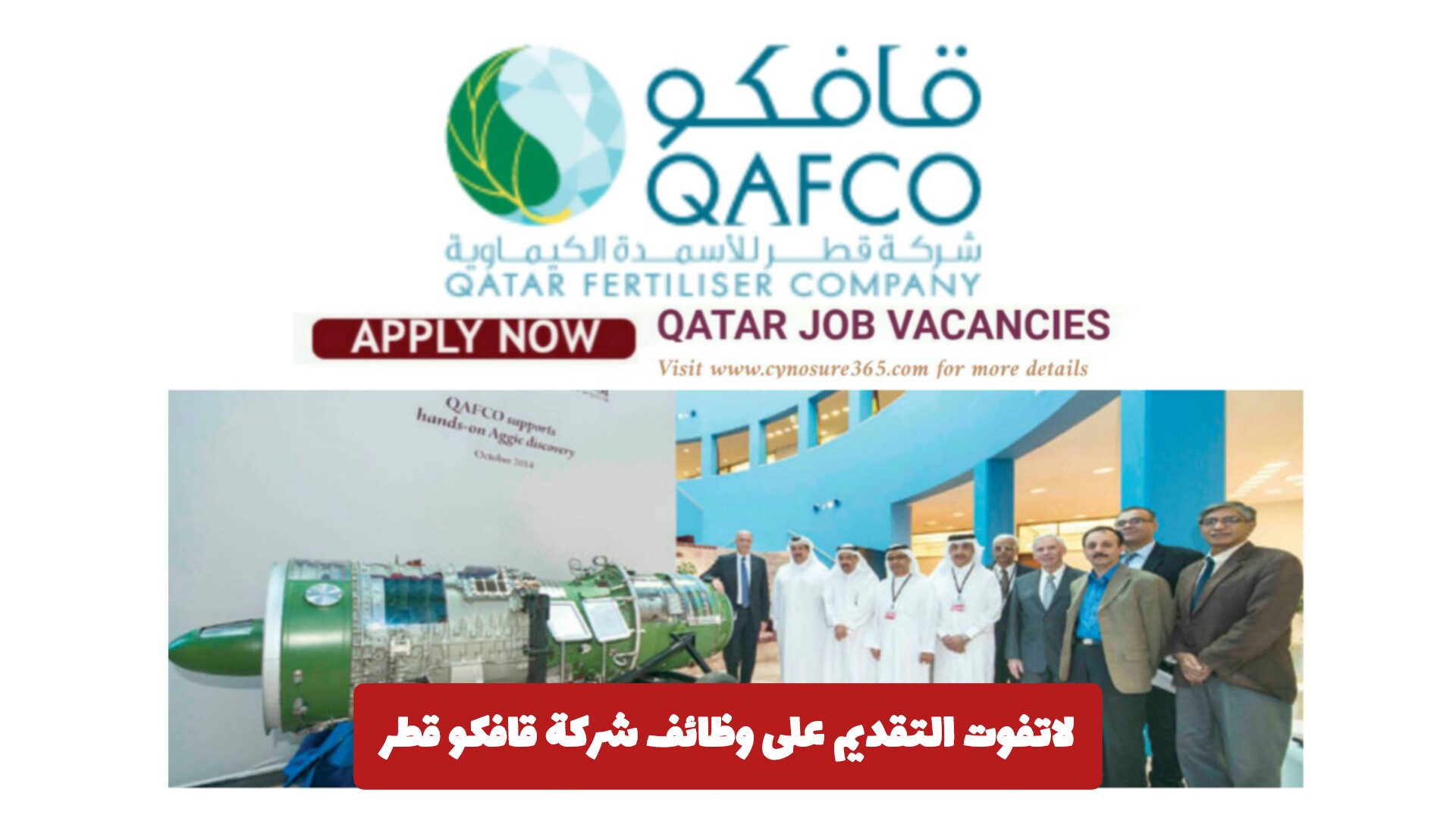 أعلنت شركة قافكو (قطر للأسمدة) عن توفر مجموعة من الوظائف الشاغرة للمؤهلين في منطقتي الدوحة ومسيعيد، ضمن خطتها للتوسع ودعم قطاعاتها المختلفة . تعتبر هذه الفرص مناسبة للمهنيين الراغبين بالانضمام إلى بيئة عمل متقدمة ومتميزة في صناعة الأسمدة والطاقة.