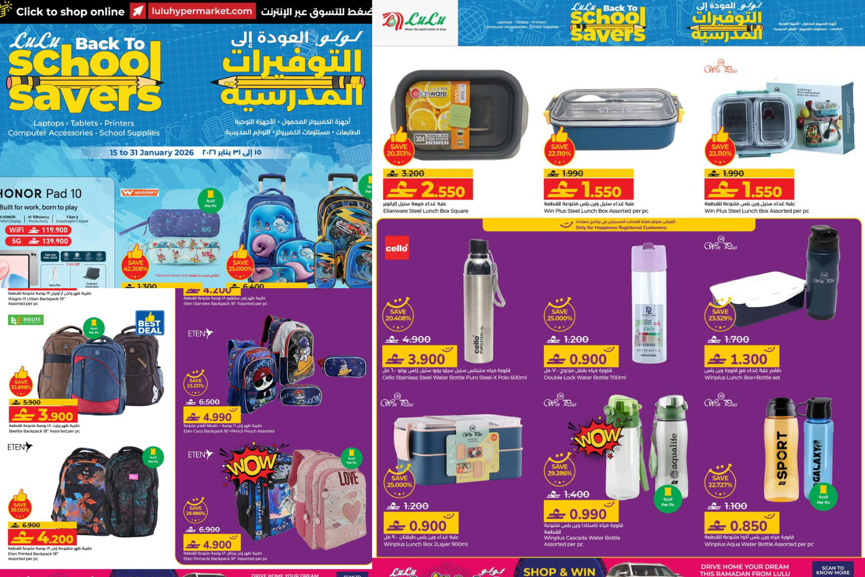 مع انطلاق الفصل الدراسي الجديد، يبحث أولياء الأمور والطلاب عن أفضل الصفقات لتجهيز المستلزمات الدراسية بأذكى الطرق . وتأتي عروض لولو هايبر ماركت سلطنة عمان هذا العام لتقلب الموازين عبر حملة "العودة إلى التوفيرات المدرسية" (Back To School Savers)، والتي تمتد من 15 إلى 31 يناير 2026.
