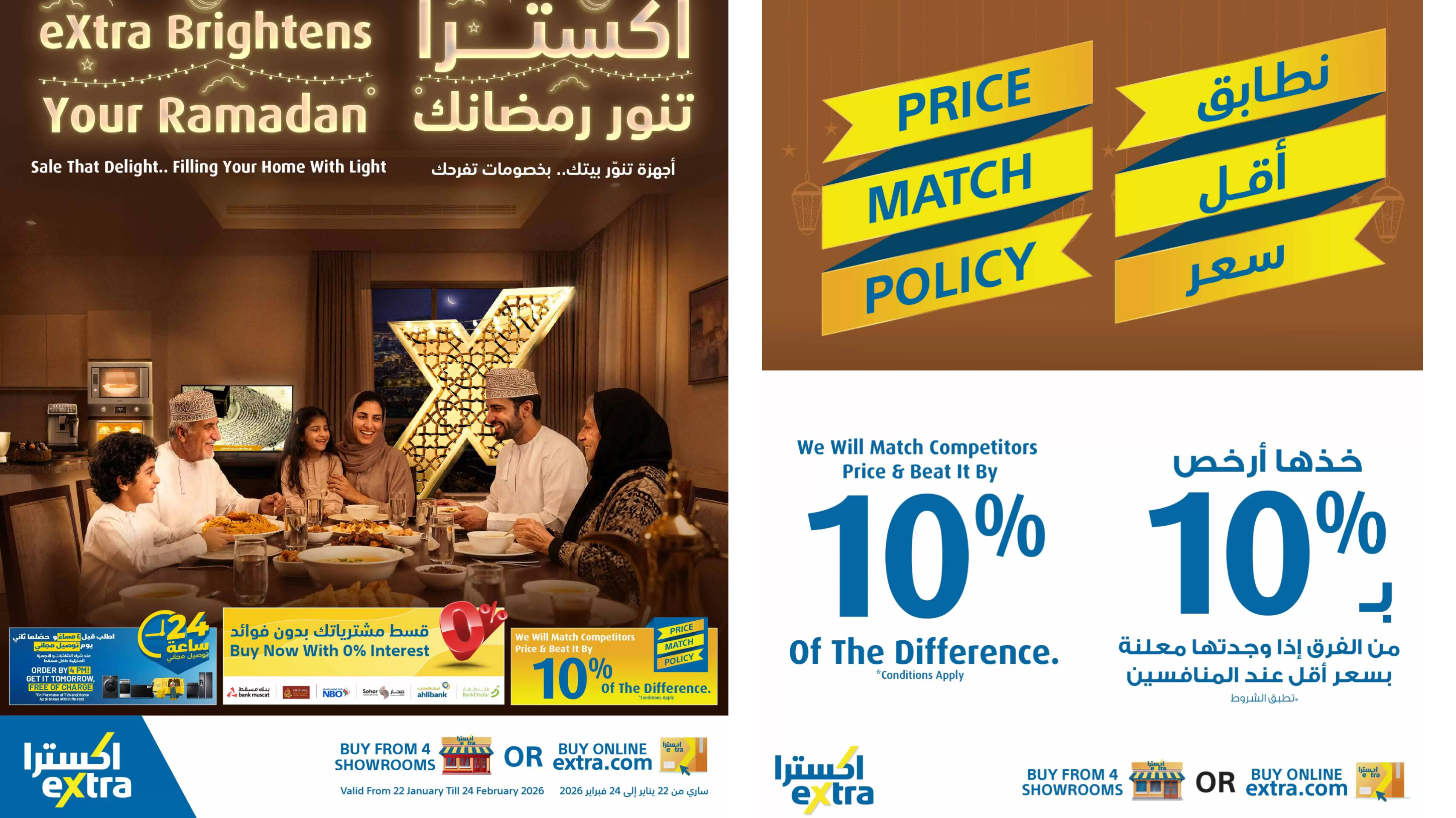 يمكنك تسوق كافة هذه العروض عبر الموقع الإلكتروني extra.com أو عبر التطبيق، مع خيار "اشترِ الآن واستلم غداً". لا تنسَ متابعة حسابهم على إنستغرام @extraoman لمتابعة الصفقات اليومية السريعة.