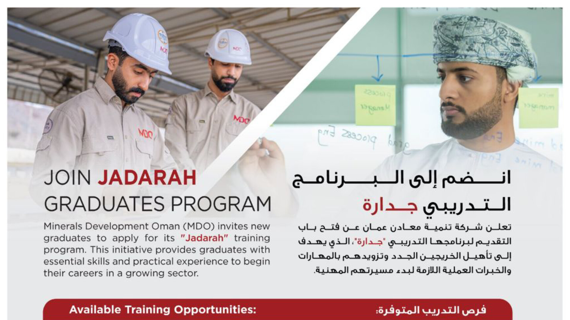 تواصل سلطنة عمان مسيرتها الطموحة في تمكين الكفاءات الوطنية الشابة وتطوير قطاع التعدين كركيزة أساسية في الرؤية المستقبلية للاقتصاد الوطني . وفي هذا السياق، أعلنت شركة تنمية معادن عمان (MDO) عن فتح باب التسجيل في برنامجها التدريبي المرموق "جدارة"، والمصمم خصيصاً لتأهيل الخريجين الجدد وتزويدهم بالمهارات العملية التي يتطلبها سوق العمل المتنامي.