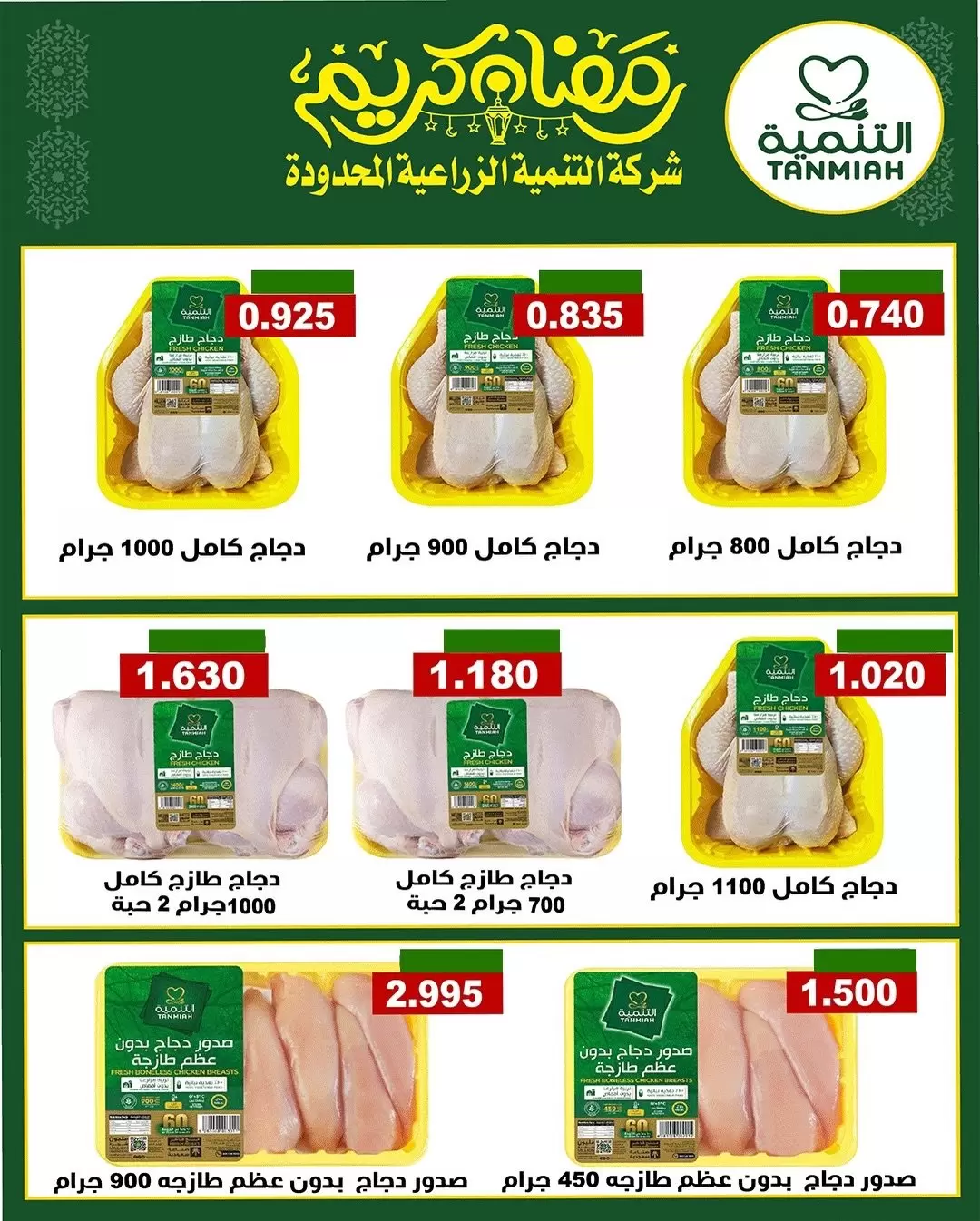 لعشاق الطبخ بالدجاج الطازج يومياً، وفر المهرجان بالتعاون مع شركة التنمية الأسعار التالية: