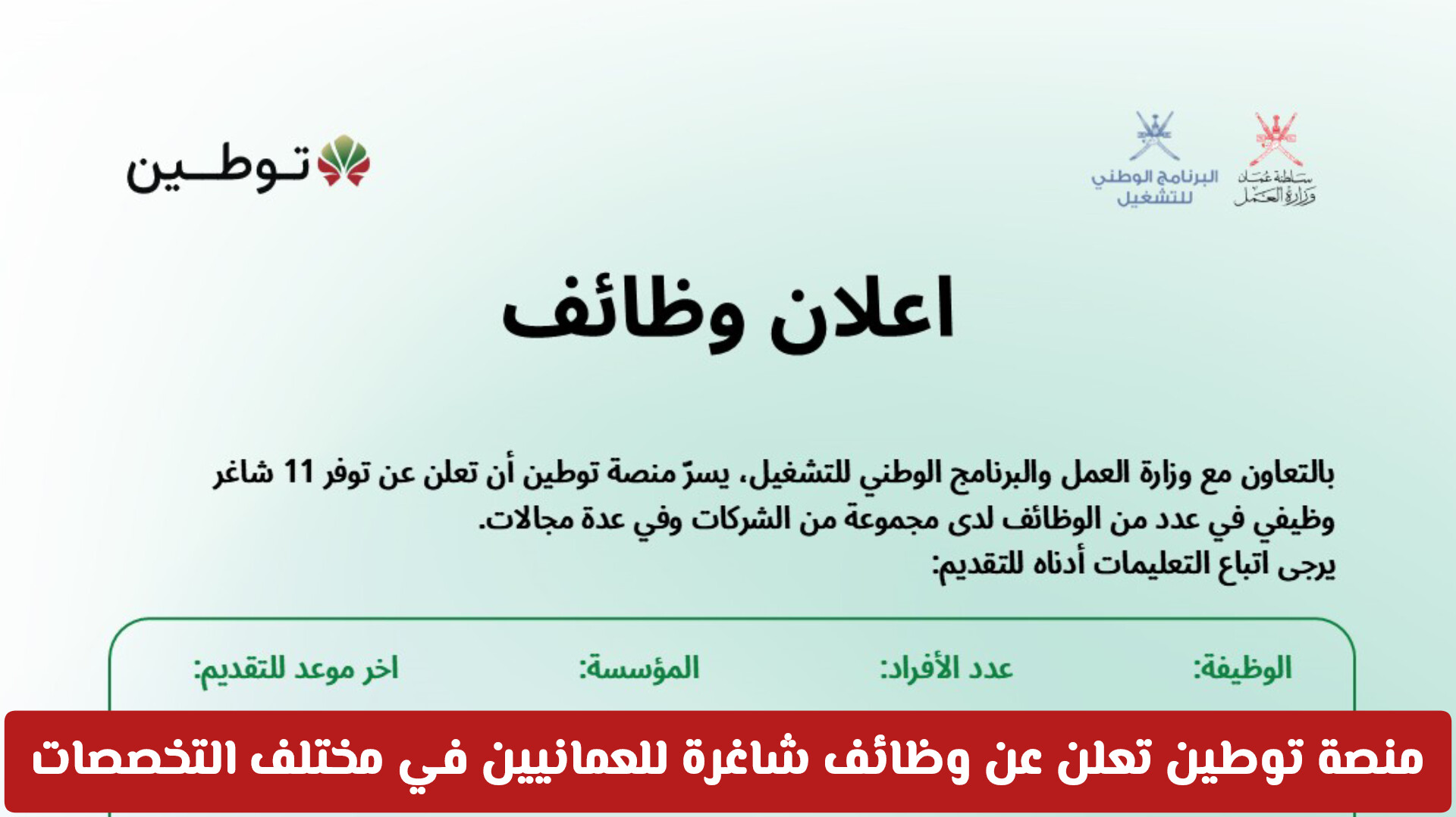ملاحظة هامة: جميع هذه الوظائف مخصصة للعمانيين فقط، وذلك في إطار جهود الإحلال وتوطين الوظائف في القطاع الخاص.