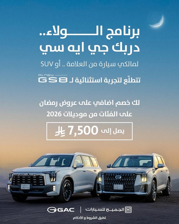 أعلنت الجميح للسيارات، الوكيل الحصري لسيارات جي إيه سي في المملكة العربية السعودية، عن إطلاق حملتها الرمضانية لعام 2026 تحت شعار: "رمضان الجميح جي إيه سي .. على ماتتمنى". وتقدم الحملة مجموعة من العروض المميزة والبرامج الحصرية التي تضيف قيمة وتجربة فريدة للعملاء خلال الشهر الفضيل.