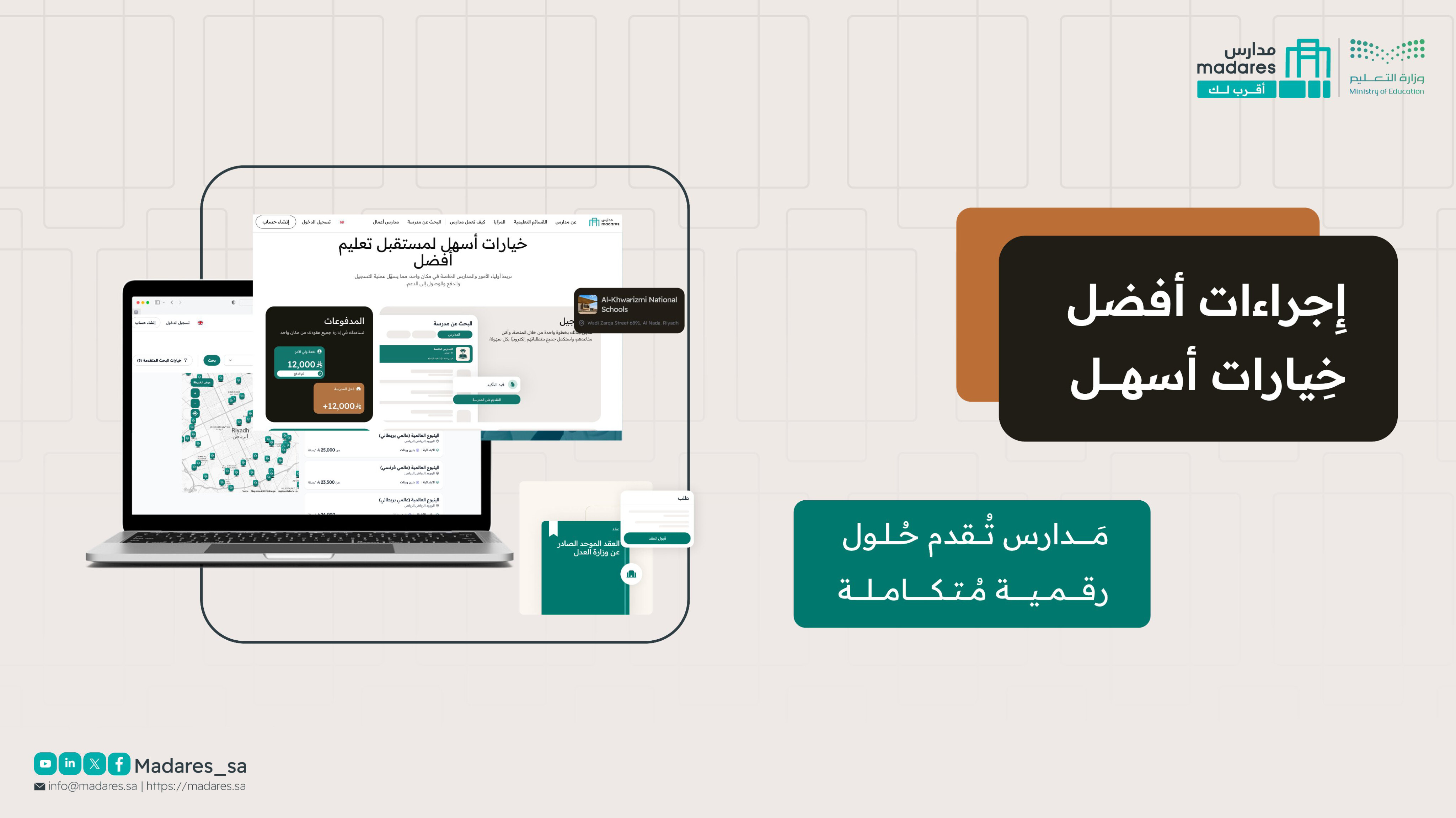 تم تصميم المنصة لتكون شاملة وشفافة، بحيث يستطيع أولياء الأمور الاستفادة من المعلومات والإجراءات بسرعة دون الحاجة للذهاب إلى المكاتب، مع ضمان متابعة كل خطوة إلكترونياً، بما يعزز تجربة المستخدم ويرسخ مفهوم التعليم الشامل للجميع.