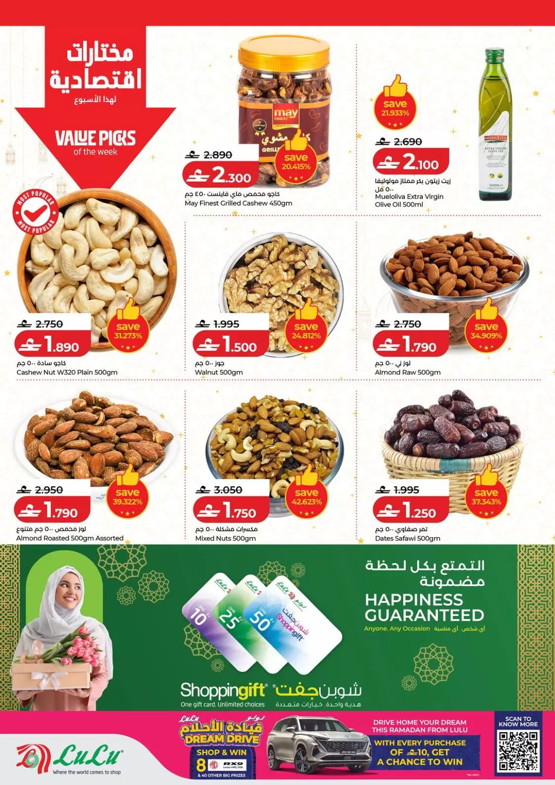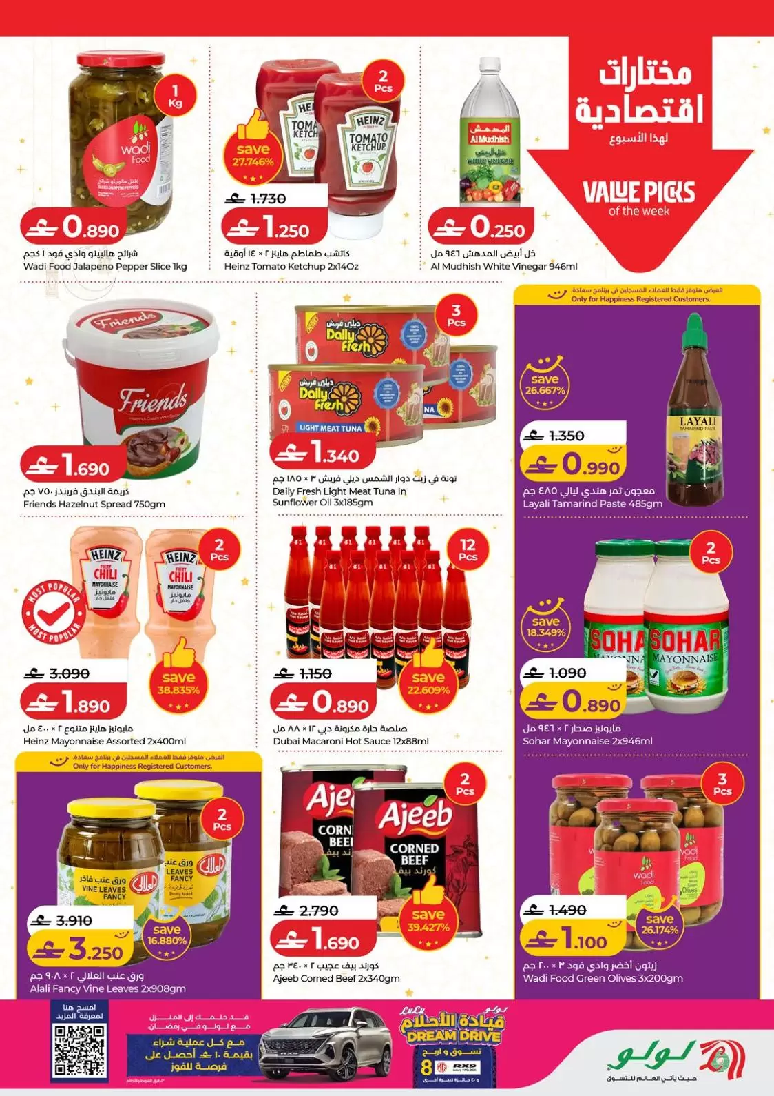 تتميز عروض هذا الأسبوع بكونها تشمل بطاقة السعادة (Happiness Card) التي تمنح المسجلين فيها خصومات إضافية حصرية. كما يمكنك الدخول في سحب "قيادة الأحلام" (Dream Drive) للفوز بسيارات فاخرة وجوائز نقدية عند التسوق بقيمة 10 ريالات عمانية أو أكثر.