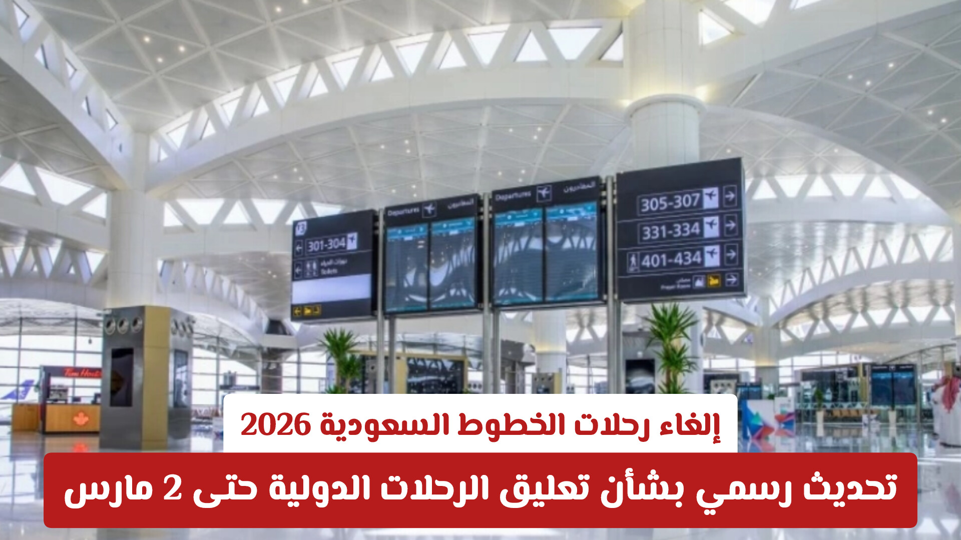 وأشارت الشركة إلى أن إلغاء رحلات الخطوط السعودية 2026 يستمر حتى الساعة 23:59 بتوقيت UTC يوم 2 مارس، مع إمكانية تمديد القرار أو تعديله بحسب ما تقتضيه الظروف التشغيلية.