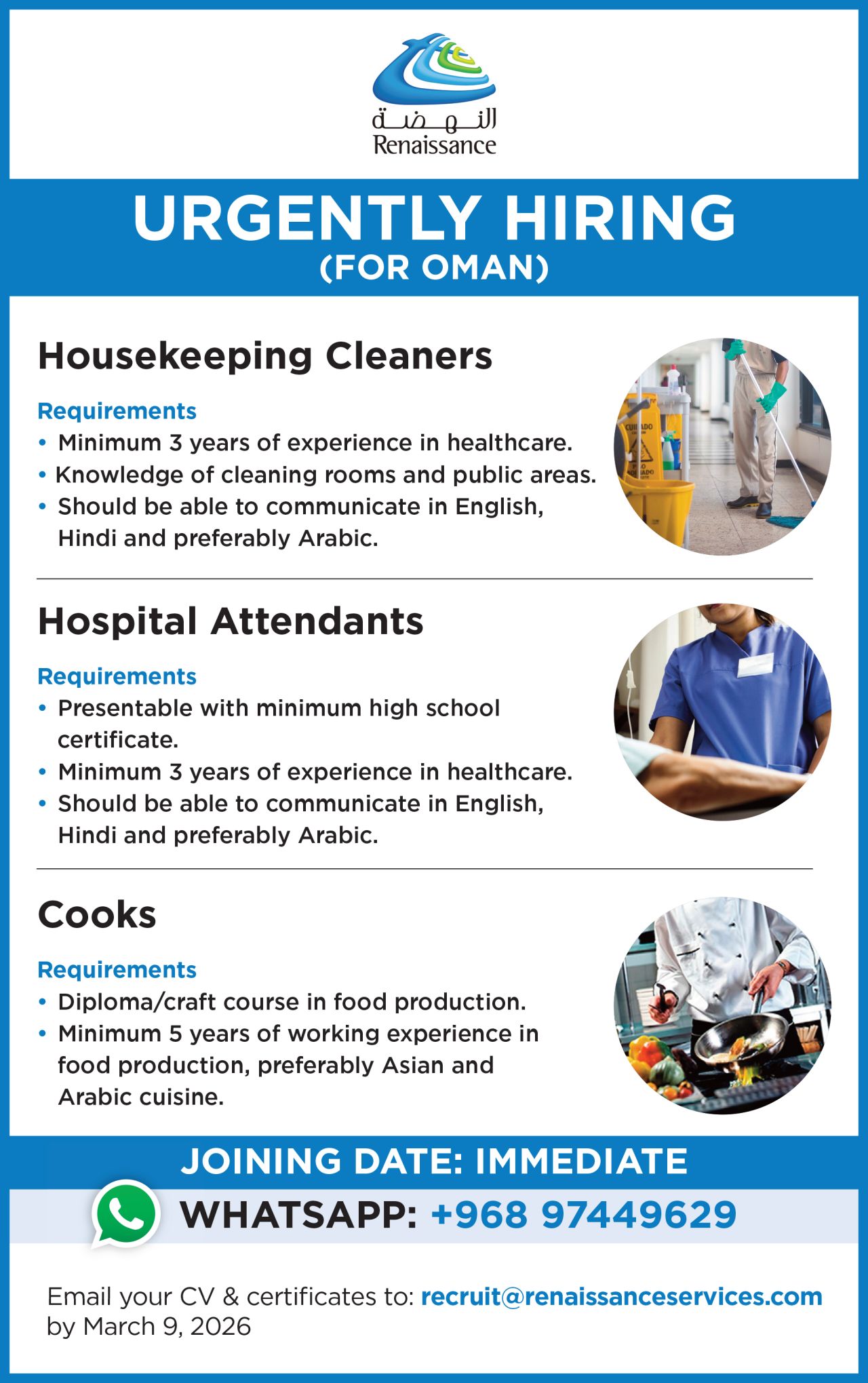 تفتح شركة النهضة للخدمات، الرائدة في قطاع الحلول اللوجستية وإدارة المرافق بالسلطنة، أبواب التوظيف مجدداً للكفاءات الراغبة في الانضمام لبيئة عمل احترافية . إذا كنت تبحث عن استقرار وظيفي ومسار مهني واعد، فإن الإعلان الجديد للشركة يضم تخصصات متنوعة تشمل القطاع الصحي والضيافة.
