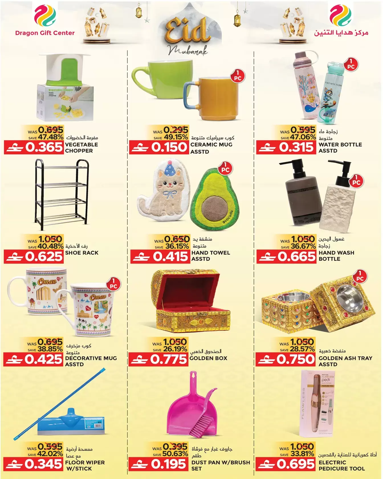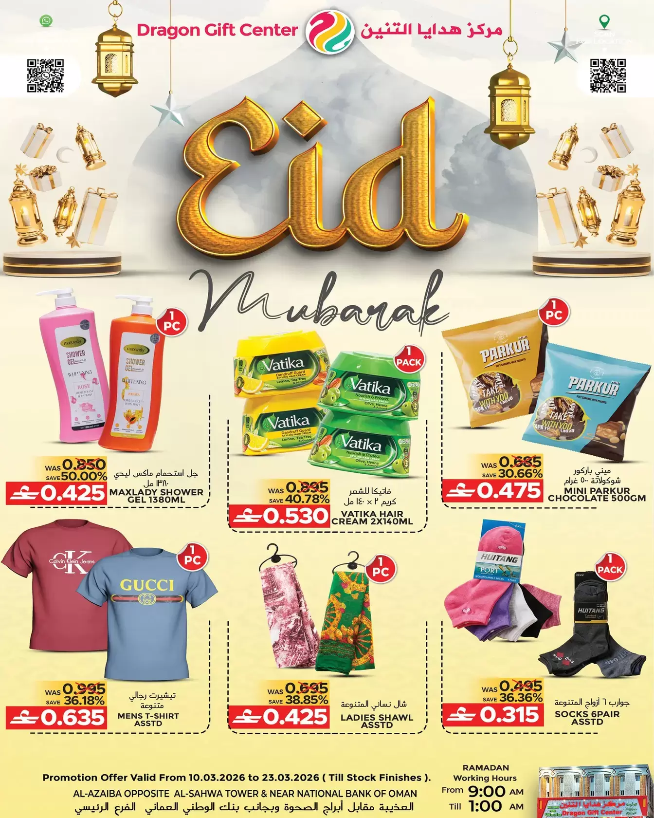 مع اقتراب حلول عيد الفطر المبارك، أعلن مركز هدايا التنين (Dragon Gift Center) في سلطنة عمان عن إطلاق مهرجان تحطيم الأسعار، مقدماً تشكيلة واسعة من العروض التي تلبي احتياجات جميع أفراد الأسرة . إذا كنت تبحث عن الأناقة والجودة بأقل الأسعار، فإن فرع العذيبة هو وجهتك المثالية.