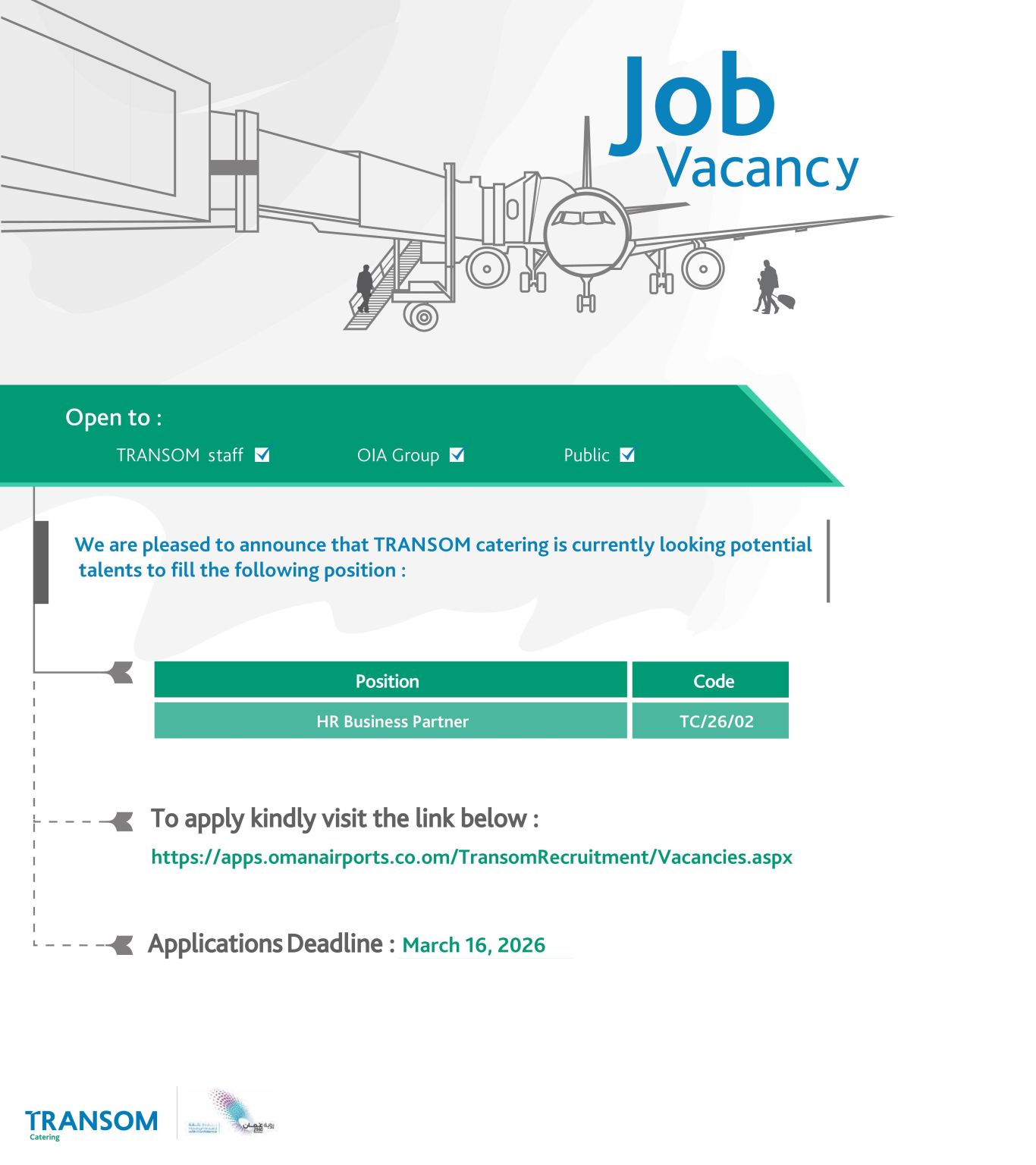تفتح سلطنة عمان أبواباً جديدة لمستقبل الشباب الطموح، حيث تصدرت وظائف شركة ترانزم المناولة (Transom Handling) محركات البحث مؤخراً بعد إعلانها عن فرصة وظيفية مميزة للخريجين الجدد . تهدف هذه الخطوة إلى استقطاب الكفاءات الوطنية الشابة للانضمام إلى قطاع الخدمات اللوجستية والمناولة الأرضية، وتحديداً في دور شريك أعمال الموارد البشرية (HR Business Partner).