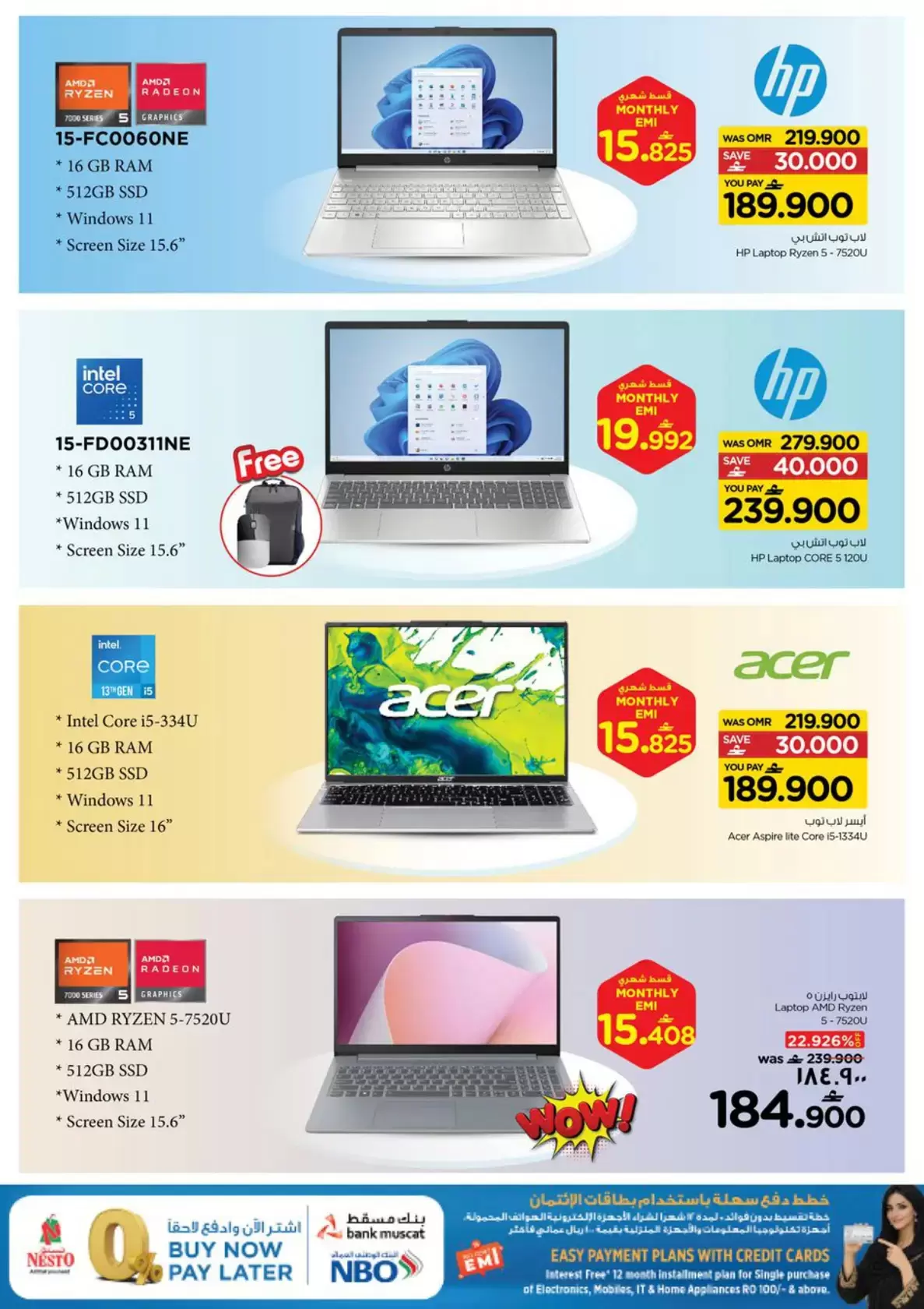 ملاحظة: تتوفر خطط دفع سهلة "اشترِ الآن وادفع لاحقاً" بالتعاون مع بنك مسقط و NBO.