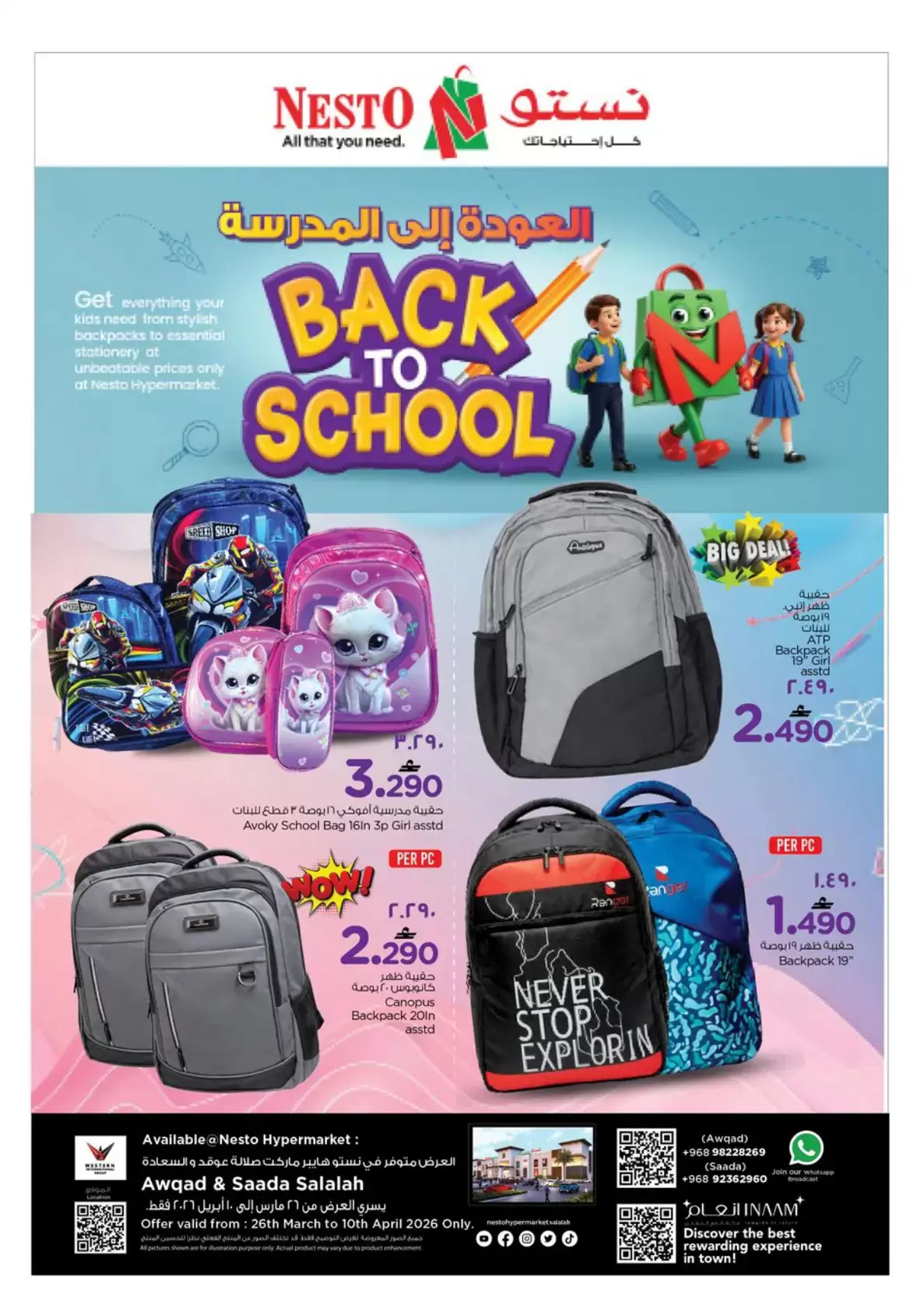 مع اقتراب قرع أجراس المدارس في سلطنة عمان، يبحث كل ولي أمر عن التوازن المثالي بين الجودة العالية والسعر الاقتصادي . وفي هذا العام، تفوقت هايبر ماركت نستو (Nesto Oman) بتقديم مهرجان "العودة إلى المدرسة" (Back to School) في فروعها المتميزة بصلالة (عوقد والسعادة) وكافة فروع السلطنة، لتوفر كل ما يحتاجه الطالب تحت سقف واحد.