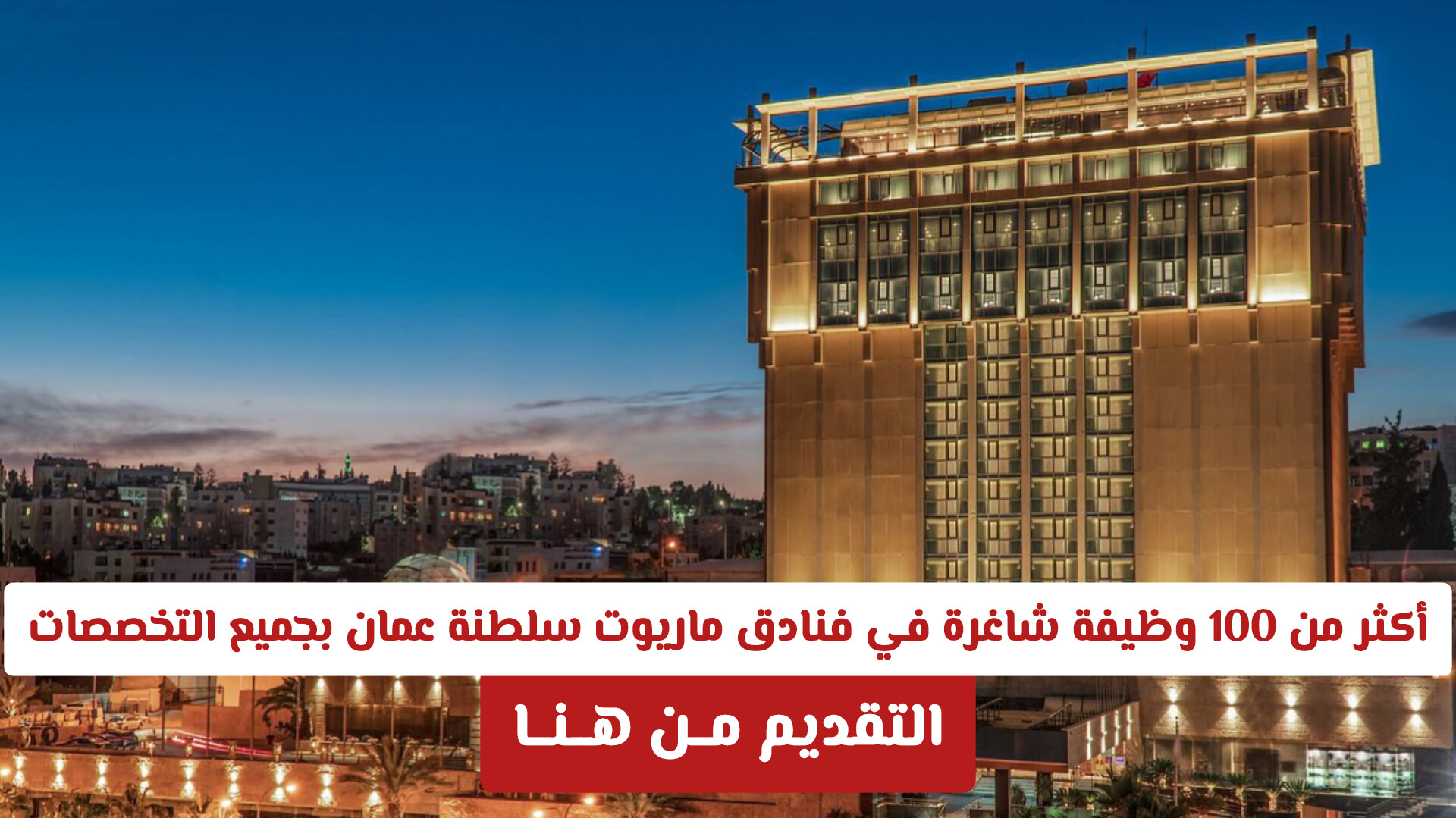 تواصل سلطنة عمان تعزيز مكانتها كوجهة سياحية رائدة، ومع هذا النمو تزداد الفرص الوظيفية في قطاع الضيافة العالمي . أعلنت مجموعة فنادق ماريوت الدولية (Marriott International) عن توفر أكثر من 100 وظيفة شاغرة في مختلف التخصصات بالعاصمة مسقط، مما يفتح آفاقاً واسعة للشباب العماني والكفاءات الطموحة للانضمام إلى واحدة من أكبر سلاسل الفنادق في العالم.