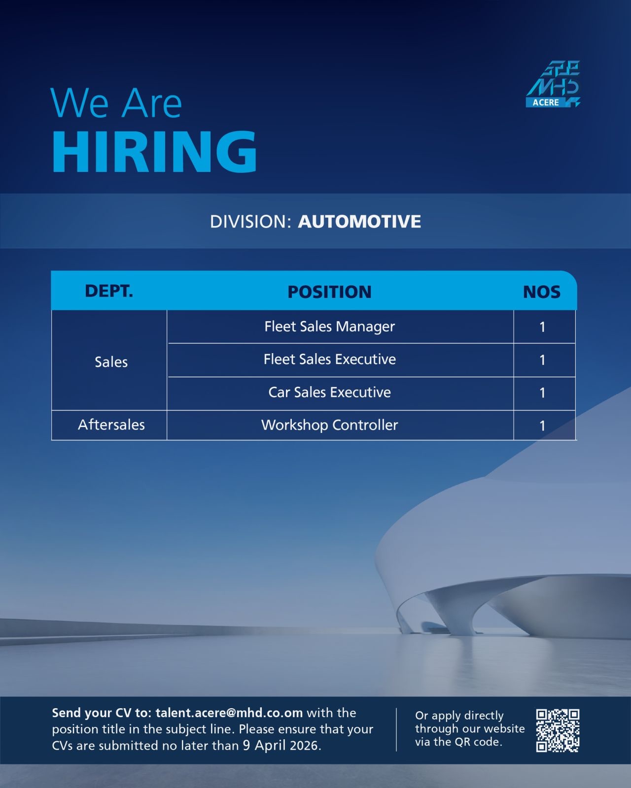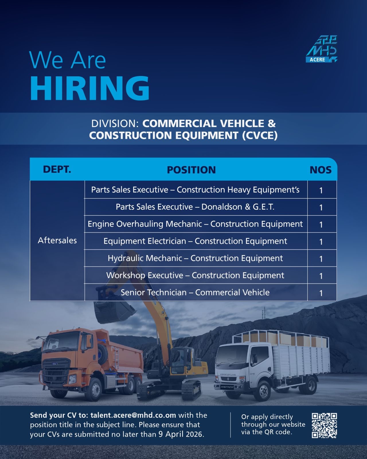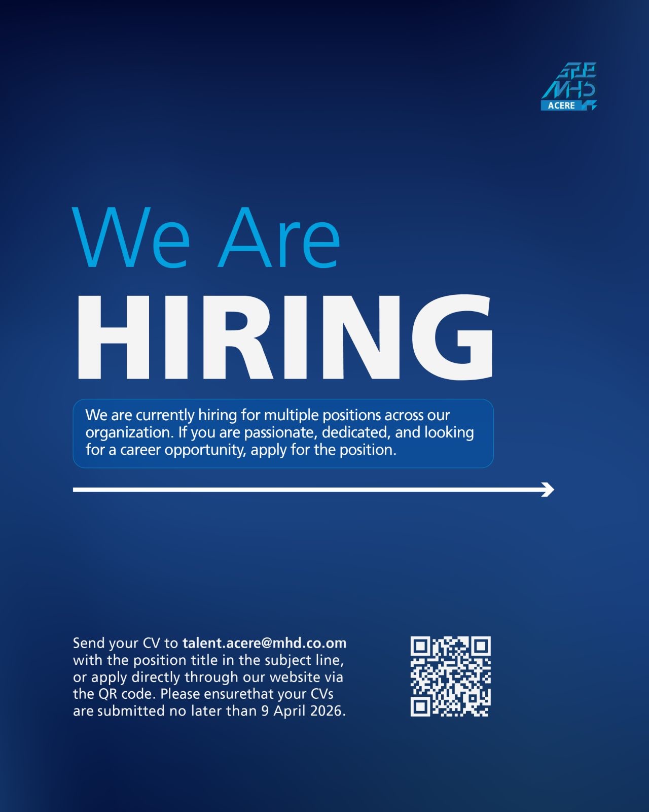 تستمر سلطنة عمان في تعزيز سوق العمل بفرص نوعية للشباب والكفاءات، وفي هذا السياق، أعلنت مجموعة محسن حيدر درويش (MHD ACERE)، الرائدة في قطاعات السيارات والمعدات، عن فتح باب التوظيف لمجموعة من الوظائف التخصصية لعام 2026 .
