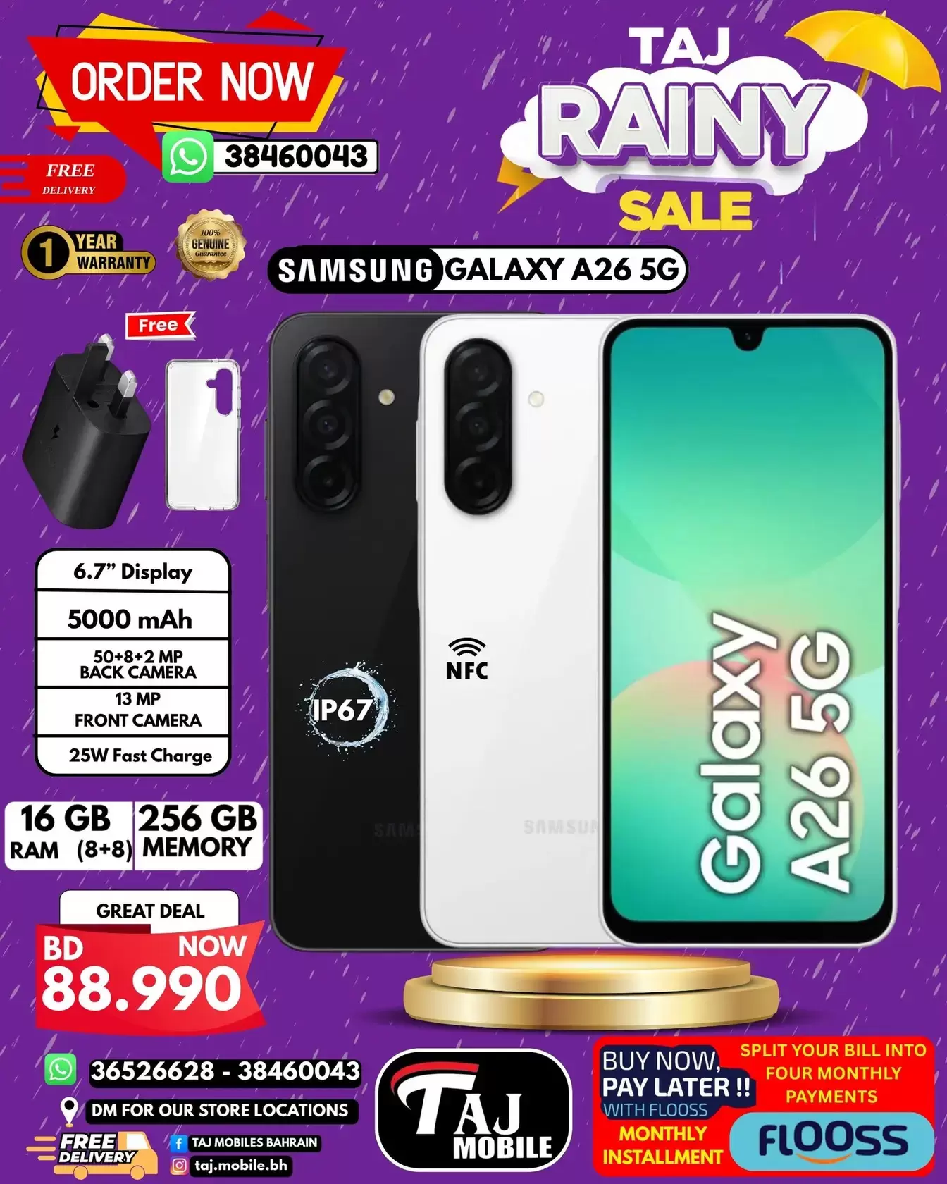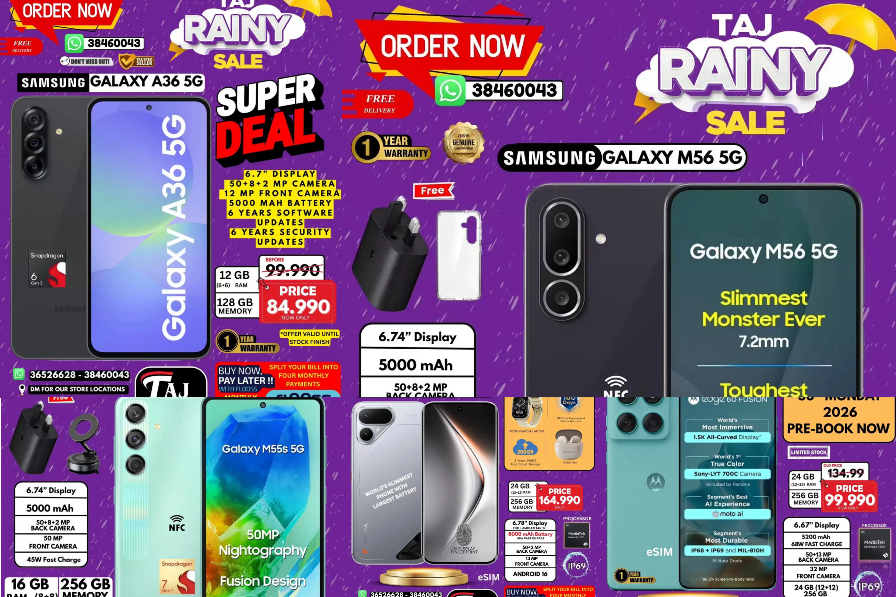 هل تبحث عن تجديد هاتفك الذكي بأحدث التقنيات وبأقل الأسعار في سلطنة عمان؟ أطلقت تاج موبايل (Taj Mobile) حملتها الأقوى لهذا العام تحت مسمى "Rainy Sale"، والتي تضم تشكيلة واسعة من هواتف سامسونج، هونر، موتورولا، وتكنو بأسعار تنافسية لا تتكرر .