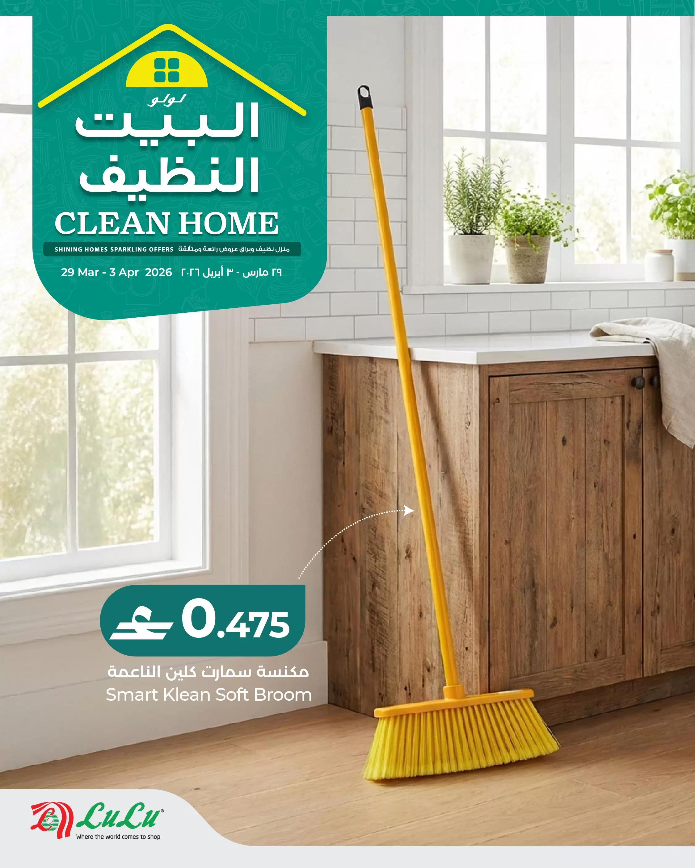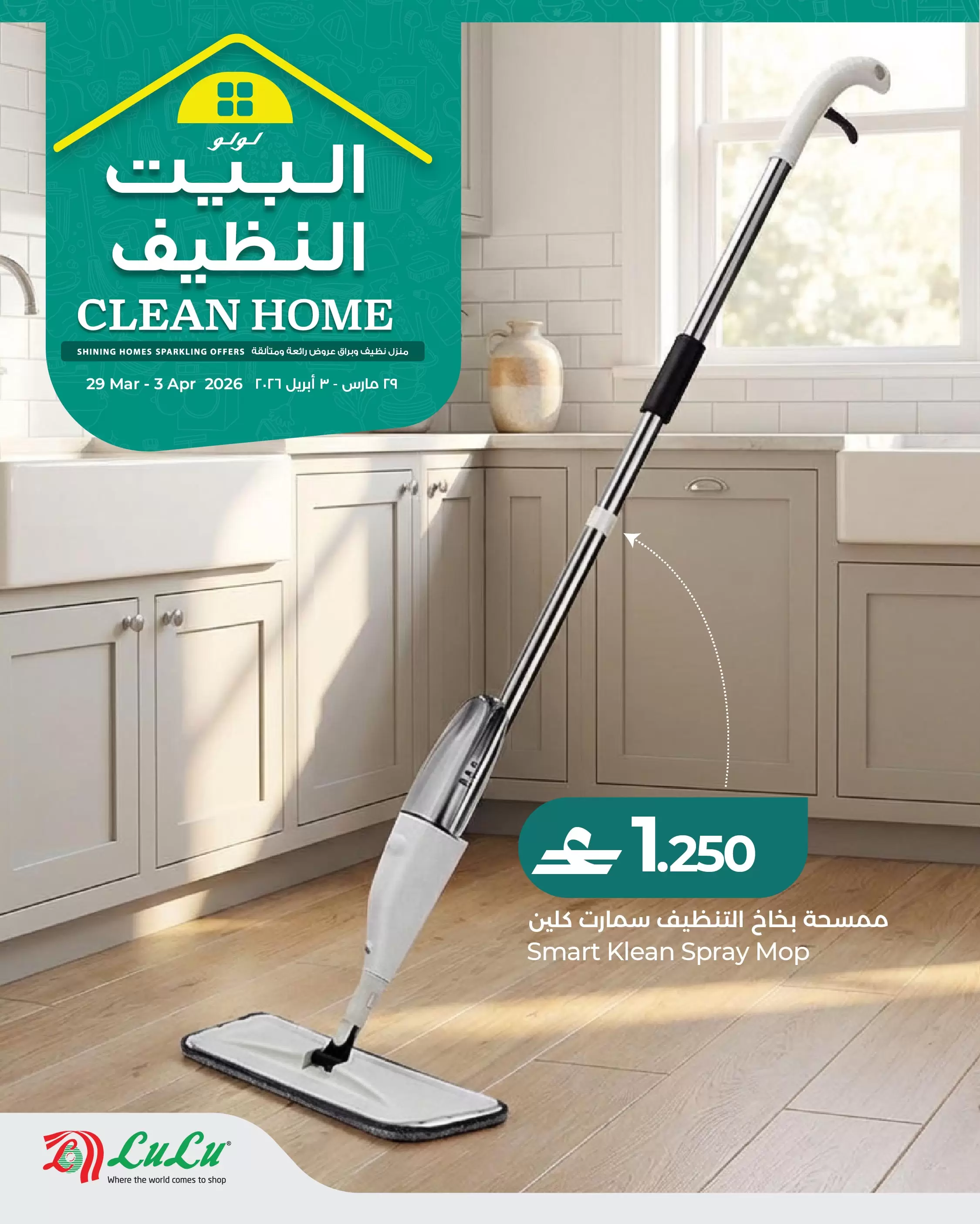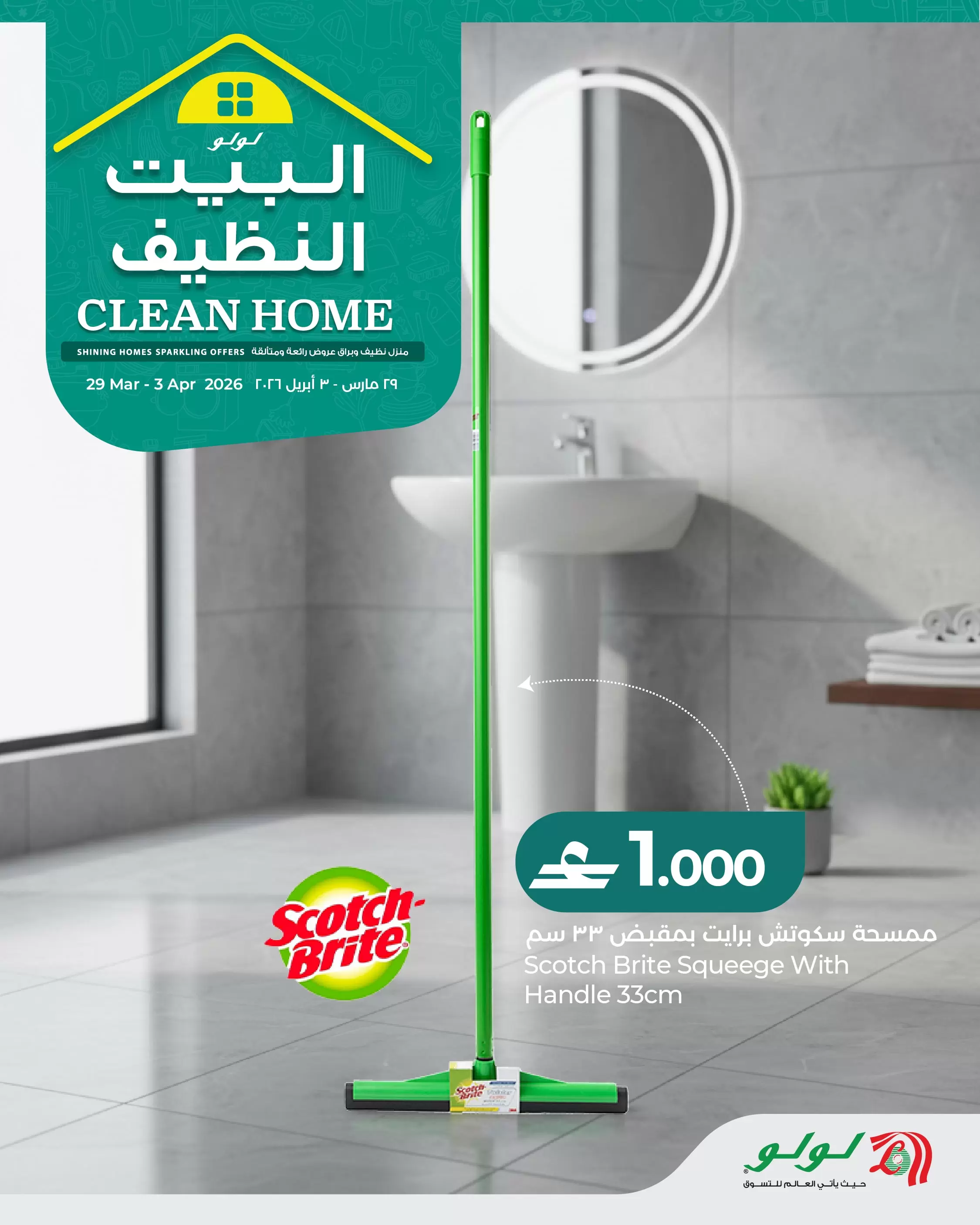 خاتمة: اجعلي منزلكِ يشرق بالنظافة مع عروض "البيت النظيف" من لولو. لا تفوتي الفرصة، فالعروض سارية لفترة محدودة حتى 3 أبريل 2026 أو حتى نفاد الكمية!