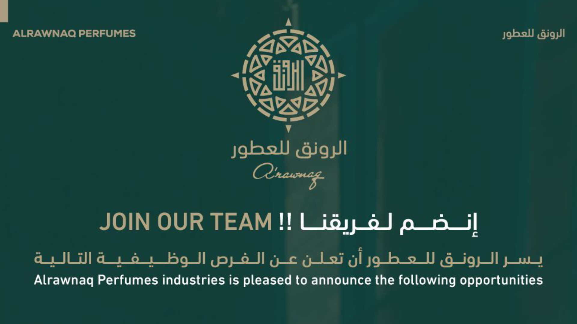 يعتبر قطاع العطور من أسرع القطاعات نمواً، والعمل مع "الرونق" يمنحك فرصة ذهبية لصقل مهاراتك في التسويق والتصميم تحت سقف مؤسسة وطنية رائدة. استثمر مهاراتك الآن وساهم في رسم ملامح النجاح القادمة.