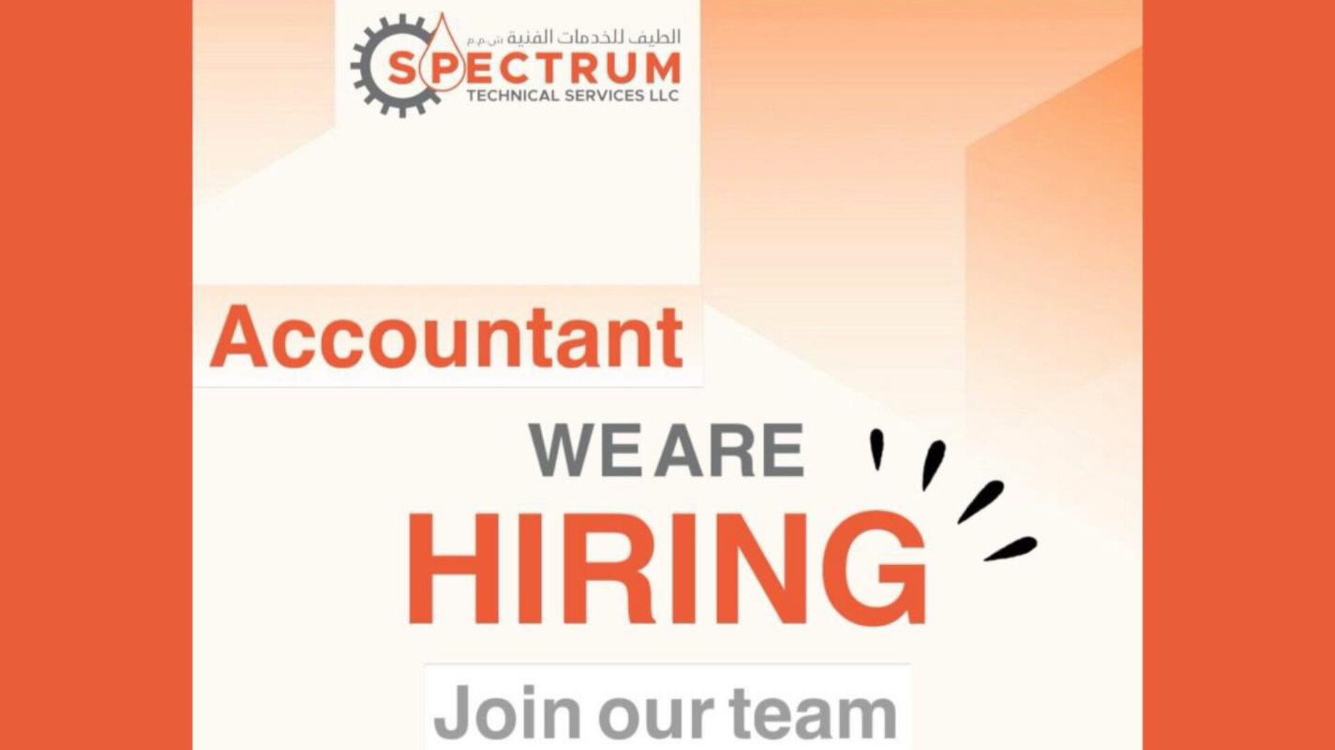 هل تبحث عن انطلاقة مهنية جديدة في قلب العاصمة العمانية؟ أعلنت شركة الطيف للخدمات الفنية (Spectrum Technical Services LLC)، الرائدة في تقديم الحلول الهندسية والفنية في سلطنة عمان، عن توفر فرص عمل شاغرة للانضمام إلى فريقها المتميز في مدينة مسقط .
