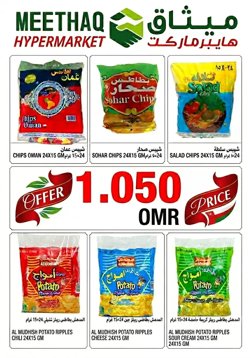 يقدم الميثاق عرضًا موحدًا على كراتين وأكياس الشيبس المفضلة في عمان بسعر 1.050 ريال عماني فقط لكل من: