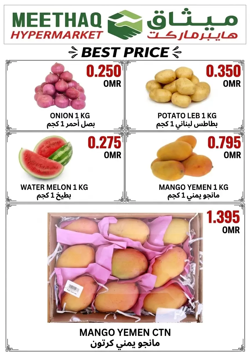 تتصدر الفواكه والخضروات قائمة التوفير في ميثاق هايبر ماركت، حيث تتوفر المنتجات الأساسية بأسعار تنافسية: