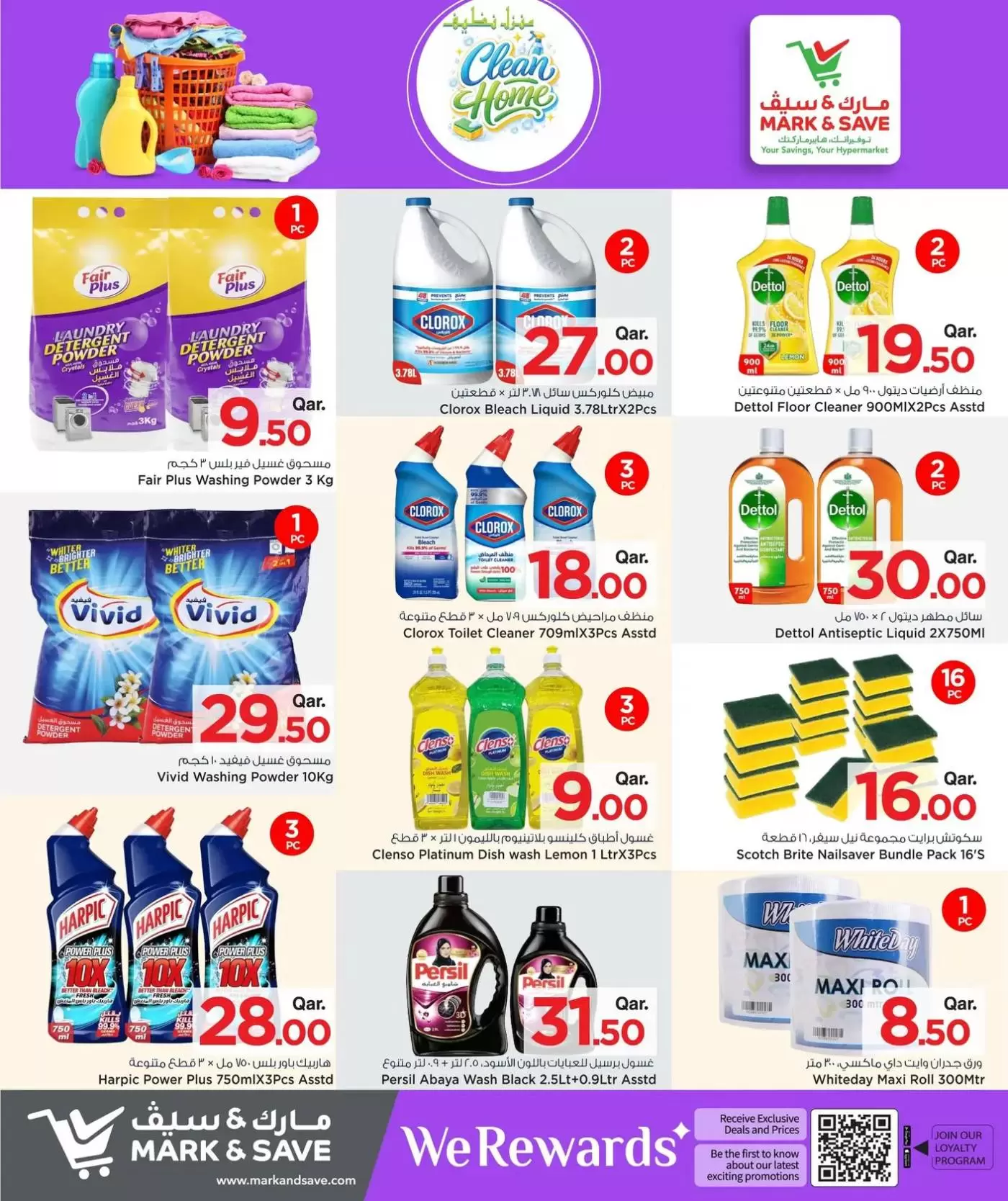 هل تبحث عن أفضل الطرق للحفاظ على لمعان منزلك دون إنفاق ثروة؟ أطلقت "مارك & سيف" قطر (Mark & Save Qatar) حملتها المنتظرة لعام 2026 تحت شعار "منزل نظيف"، والتي تقدم خصومات هائلة على كل ما يحتاجه البيت العصري من أدوات تنظيف ومنظفات كيميائية ومستلزمات الغسيل .