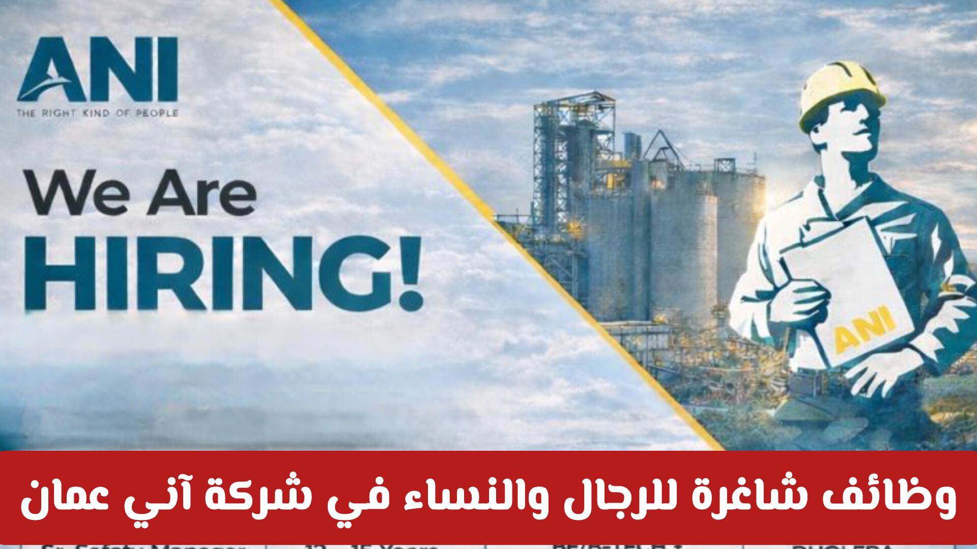 هل تبحث عن انطلاقة مهنية جديدة في قطاع الخدمات الصناعية؟ أعلنت شركة آني للخدمات المتكاملة المحدودة (Ani Integrated Services Ltd) عن فتح باب التسجيل لشغل مجموعة من الوظائف التخصصية في فرعها بـ سلطنة عمان، وتحديداً في منطقة "طيوي" بمحافظة جنوب الشرقية .