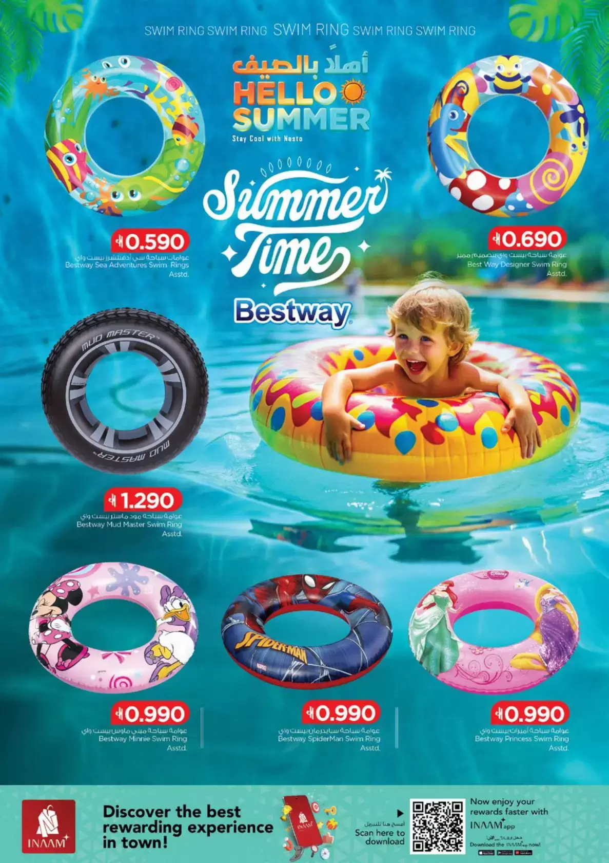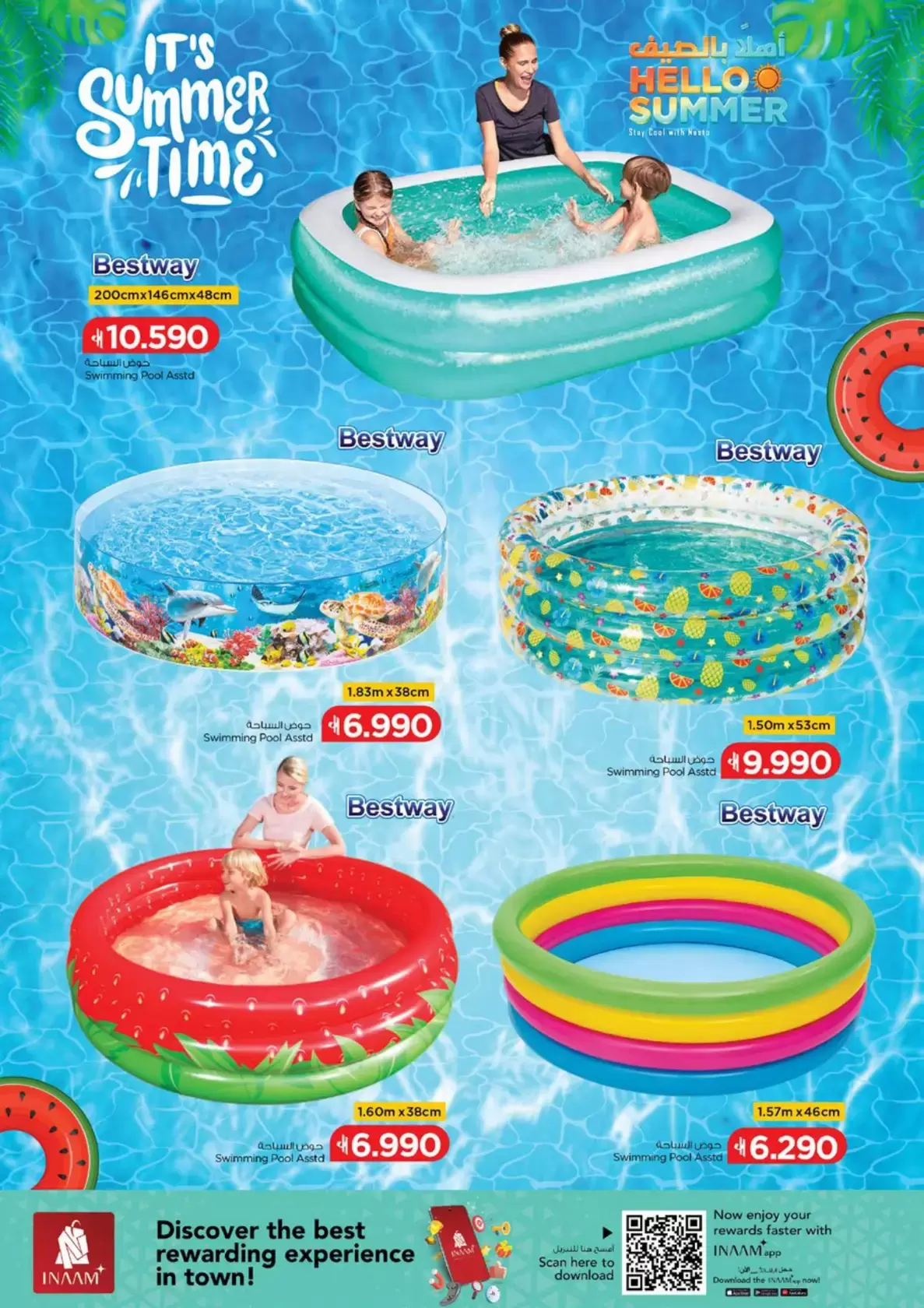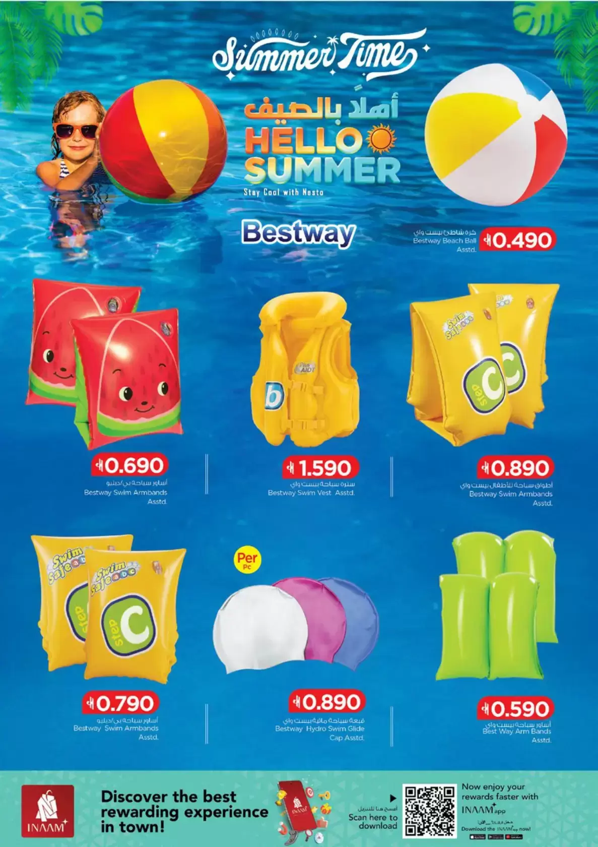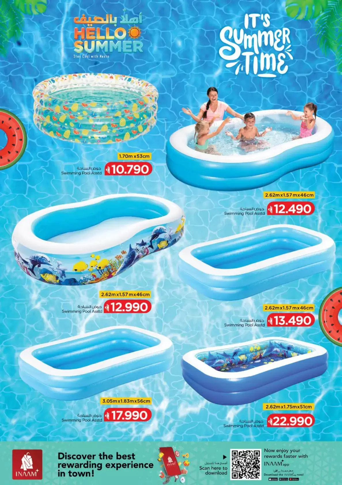 مع ارتفاع درجات الحرارة في سلطنة عمان، يبحث الجميع عن الطريقة المثلى لتبريد الأجواء والاستمتاع بالوقت مع العائلة . أطلقت نستو هايبر ماركت (Nesto Oman) حملتها المنتظرة "أهلاً بالصيف" (Hello Summer)، والتي تتضمن تخفيضات هائلة على المسابح المنزلية ومستلزمات السباحة.