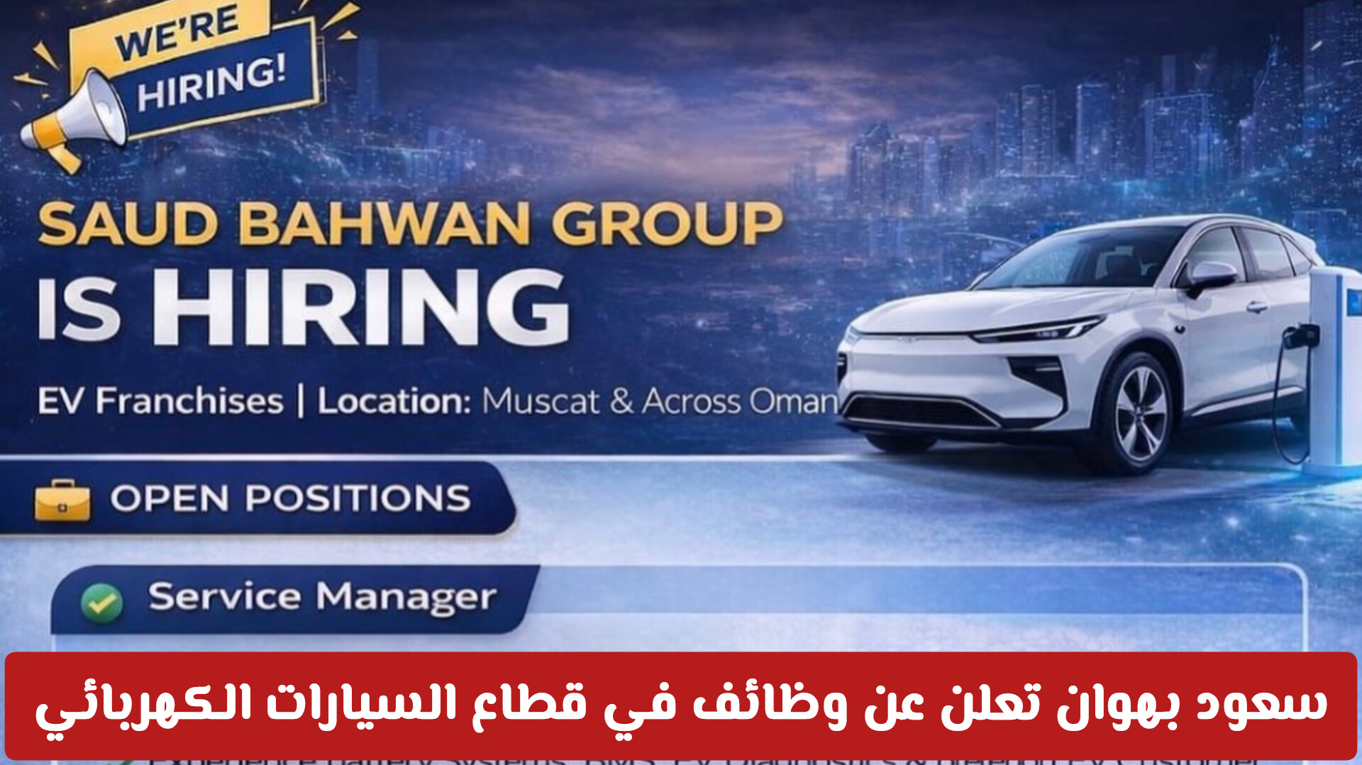 تستمر سلطنة عمان في تعزيز رؤيتها نحو الاستدامة والطاقة النظيفة، وفي هذا السياق، أعلنت مجموعة سعود بهوان (Saud Bahwan Group)، الرائدة في قطاع السيارات، عن فتح باب التوظيف لمجموعة من الوظائف التخصصية المرموقة في وكالات السيارات الكهربائية (EV Franchises) . الموقع: مسقط وأنحاء سلطنة عمان.