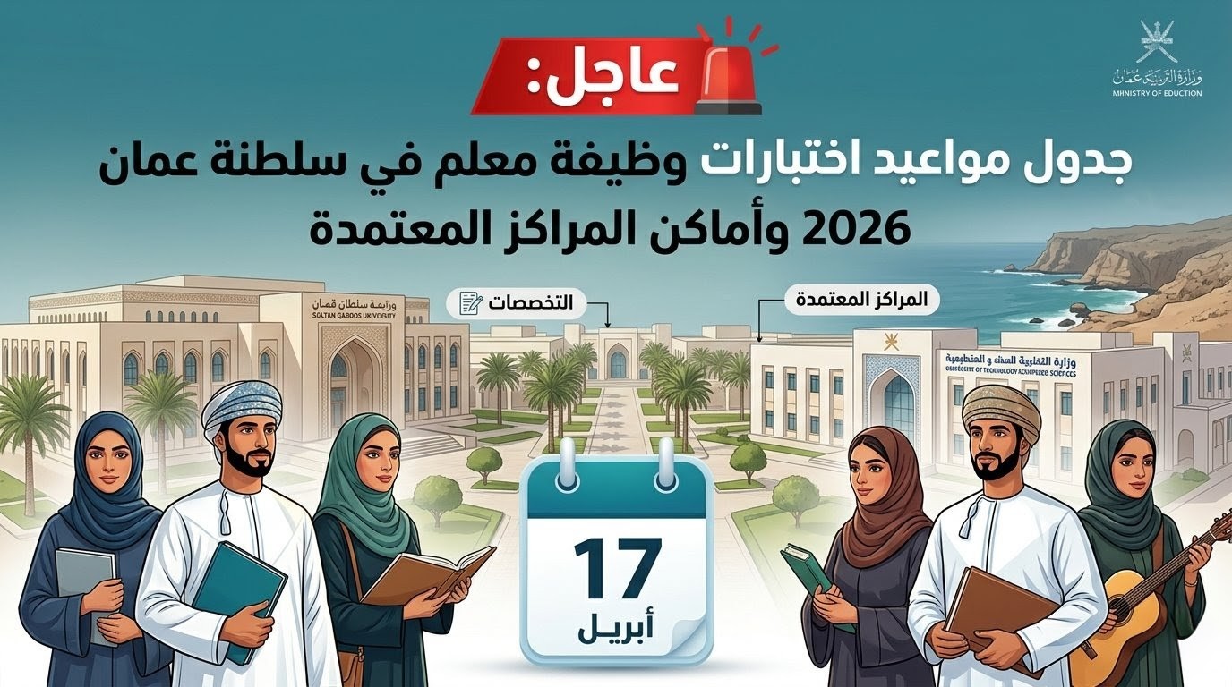 تستعد الكوادر التربوية في سلطنة عمان لمرحلة حاسمة من مسيرة التوظيف، حيث أعلنت وزارة التربية والتعليم، بالتعاون مع وزارة العمل، عن الجدول الزمني والمراكز المحددة لإجراء اختبارات المتقدمين لشغل وظائف الهيئة التدريسية للعام الدراسي القادم . يأتي هذا الإعلان استكمالاً للإجراءات التي بدأت في فبراير الماضي لاختيار أفضل الكفاءات من حملة المؤهلات الجامعية التربوية وشهادات التأهيل التربوي.