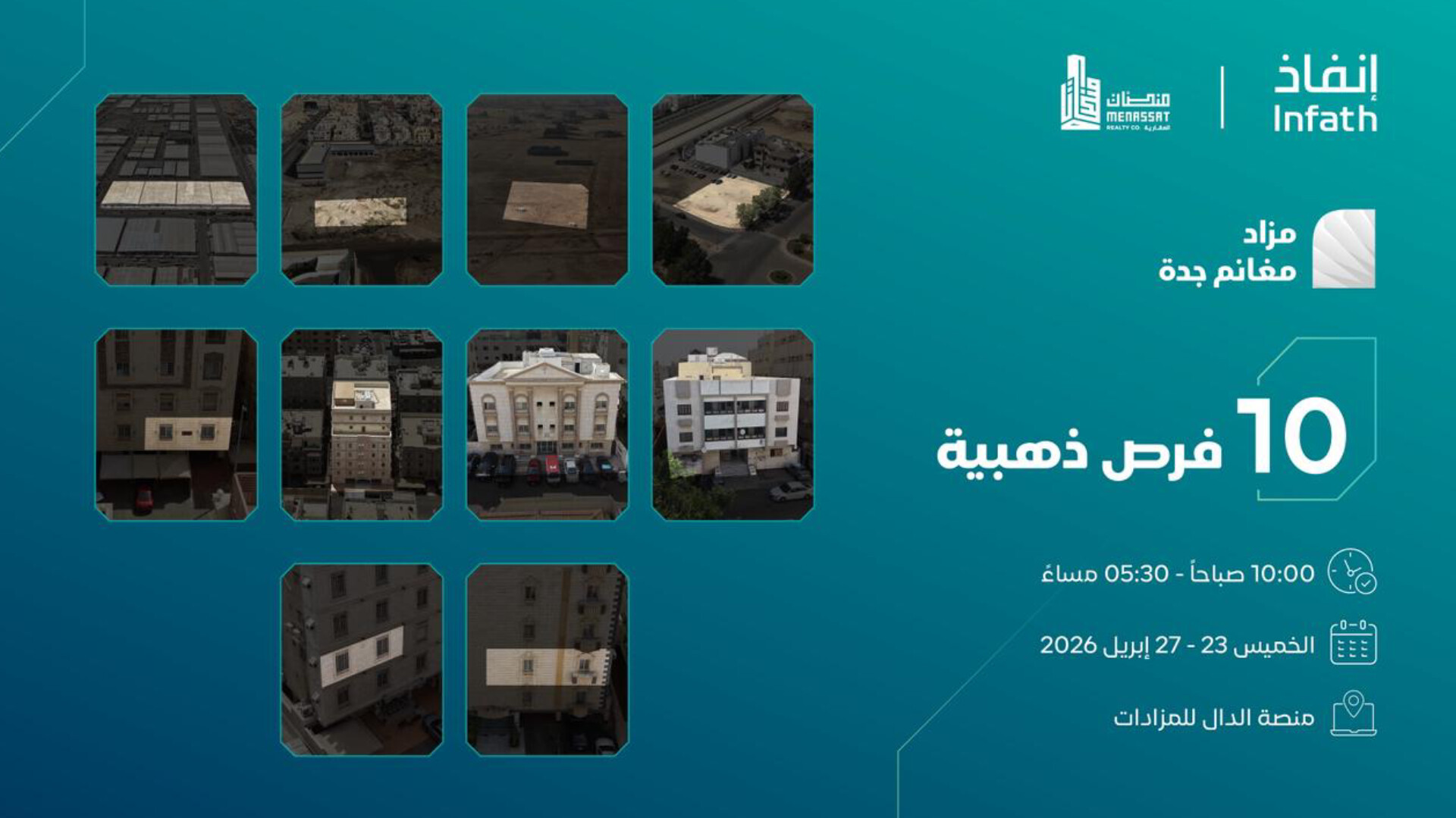 تتجه أنظار المستثمرين والراغبين في التملك نحو عروس البحر الأحمر، حيث كشفت شركة منصات العقارية عن إطلاق واحد من أهم الأحداث العقارية لهذا العام: مزاد مغانم جدة الإلكتروني . يأتي هذا الحدث النوعي ليعيد صياغة مفهوم الاستثمار الآمن والمربح، من خلال طرح نخبة من الأصول العقارية التي تم اختيارها بعناية لتناسب طموحات الباحثين عن التميز تحت إشراف مباشر من مركز الإسناد والتصفية (إنفاذ).