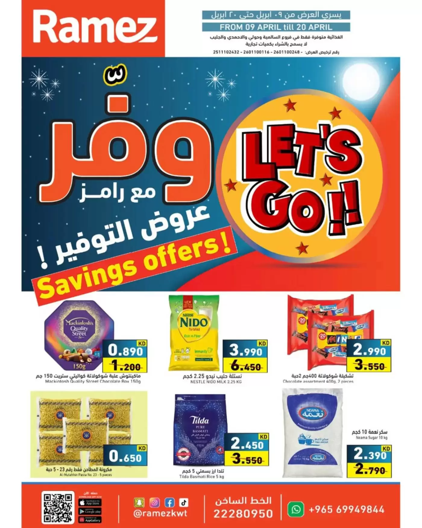 تعتبر أسواق رامز الكويت وجهة التوفير الأولى للعائلات، ومع انطلاق حملة "وفر مع رامز - Let's Go"، تشتعل المنافسة بتقديم باقة من العروض الحصرية التي تشمل الخضروات الطازجة، اللحوم المجمدة، والمواد التموينية بأسعار تنافسية لا تقبل المقارنة . في هذا المقال، نستعرض لكم تفاصيل مجلة العروض الممتدة من 09 أبريل حتى 20 أبريل.