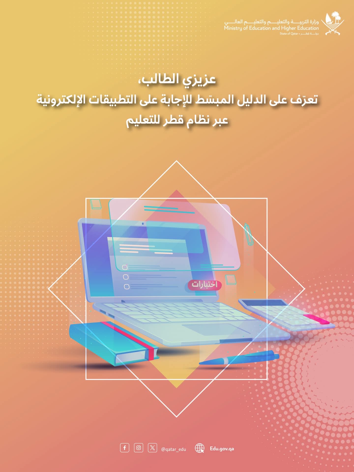 أطلقت وزارة التربية والتعليم والتعليم العالي في دولة قطر مجموعة من الإرشادات المحدثة لتمكين الطلبة من التعامل مع التقييمات الرقمية بكفاءة . يهدف نظام قطر للتعليم إلى تسهيل العملية الدراسية، ولضمان تحقيق أعلى الدرجات، استعرضت الوزارة خطوات تقنية مبسطة تضمن للطالب أداء الاختبارات القصيرة والتطبيقات بسلاسة تامة.