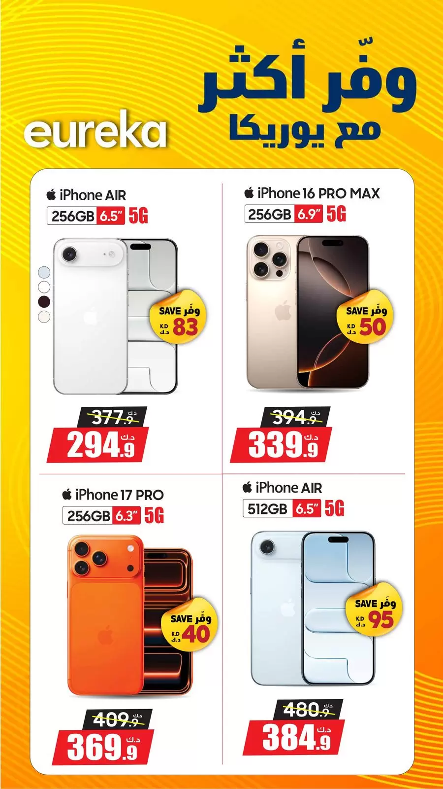 | iPhone 17 Pro | 256GB | 409.9 د.ك | 369.9 د.ك | 40 د.ك |
