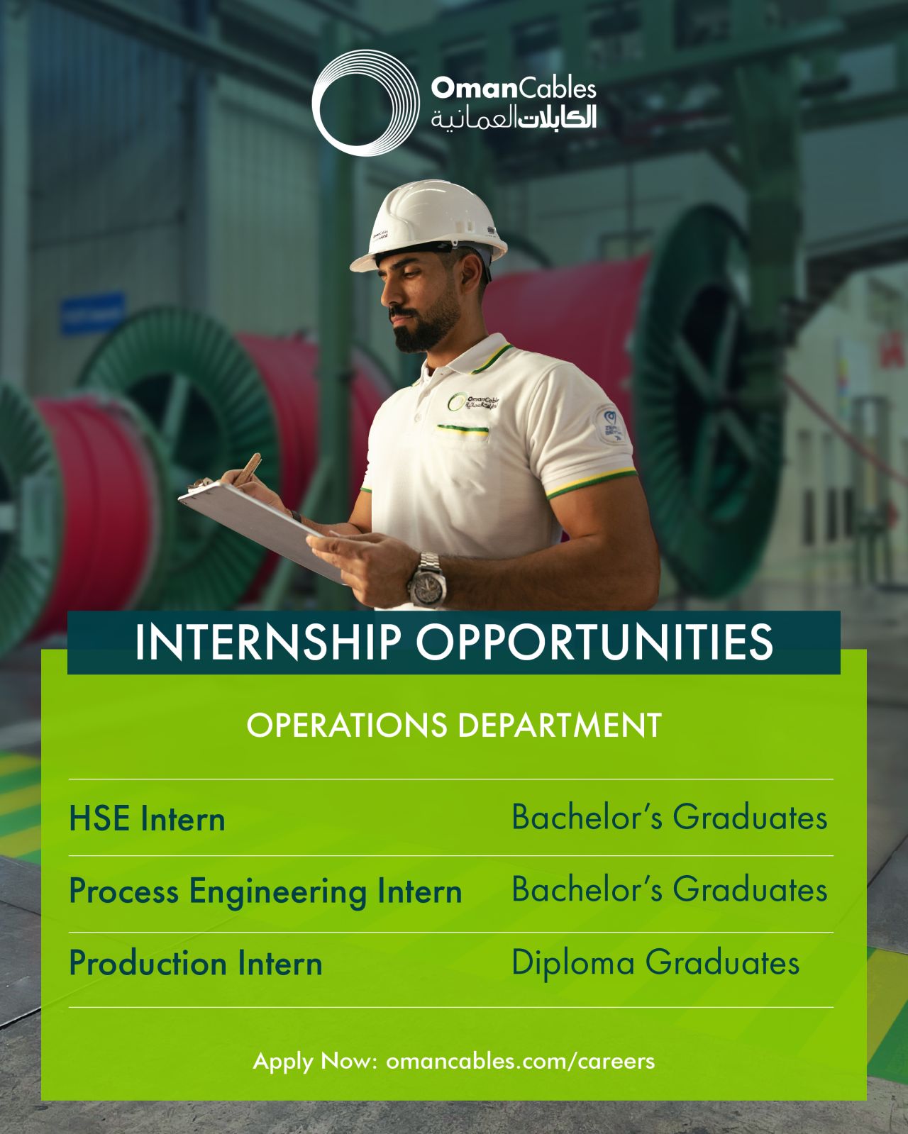 هل أنت خريج جديد وتبحث عن انطلاقة مهنية قوية في واحدة من كبرى الشركات الصناعية في السلطنة؟ أعلنت شركة كابلات عمان (Oman Cables)، الرائدة في صناعة الكابلات والحلول الكهربائية، عن طرح فرص تدريبية مميزة ضمن قسم العمليات (Operations Department) لعام 2024-2025 .