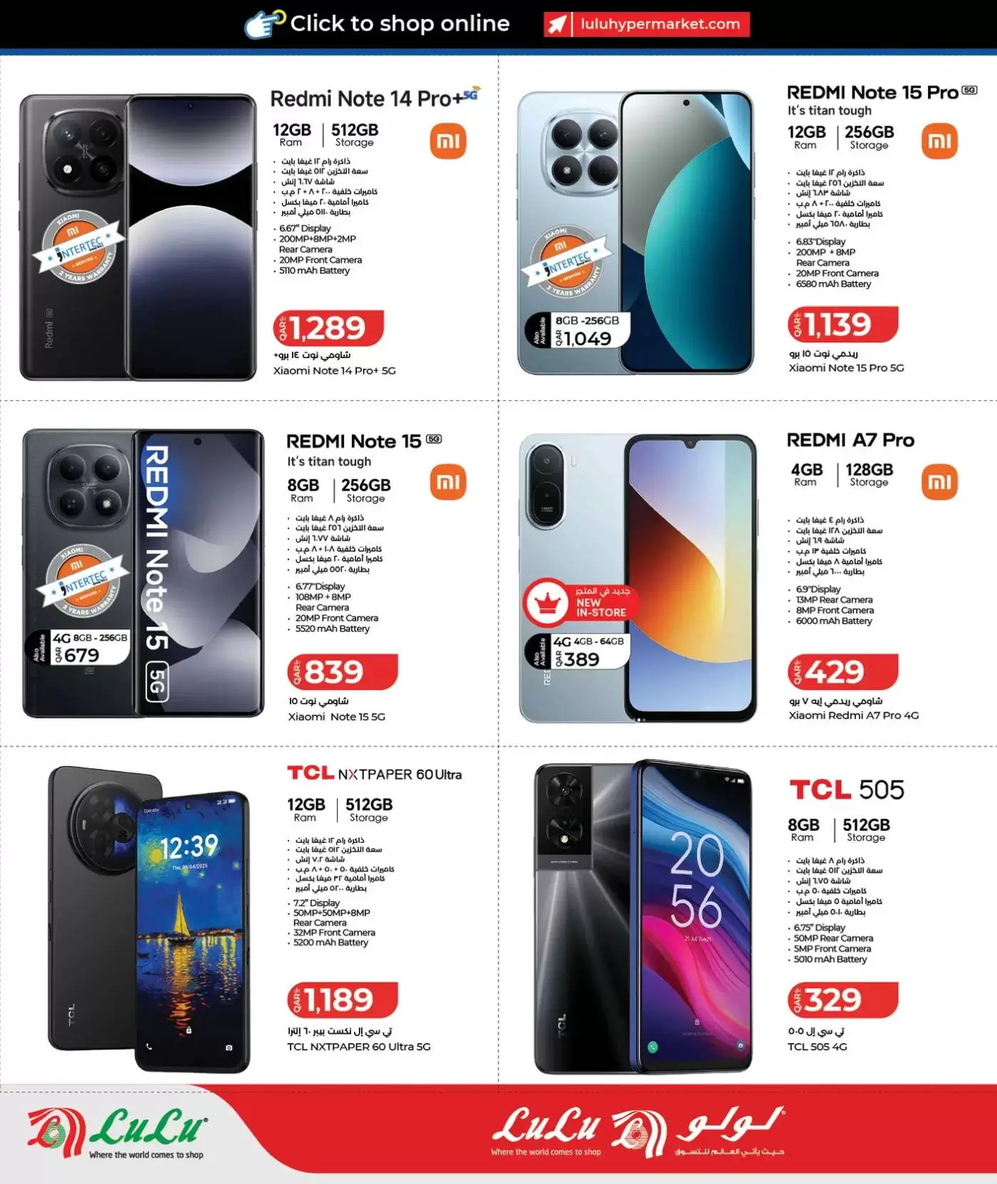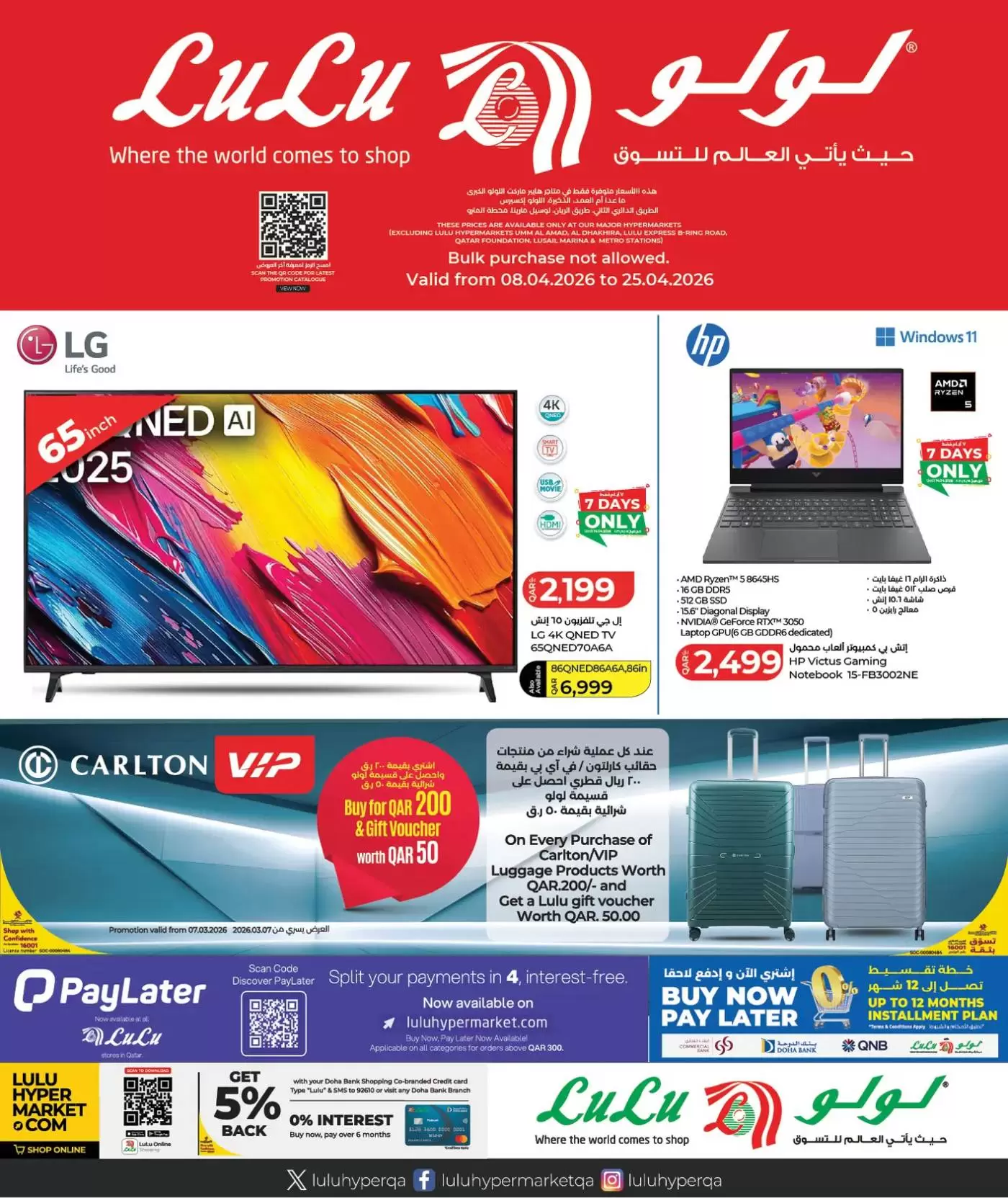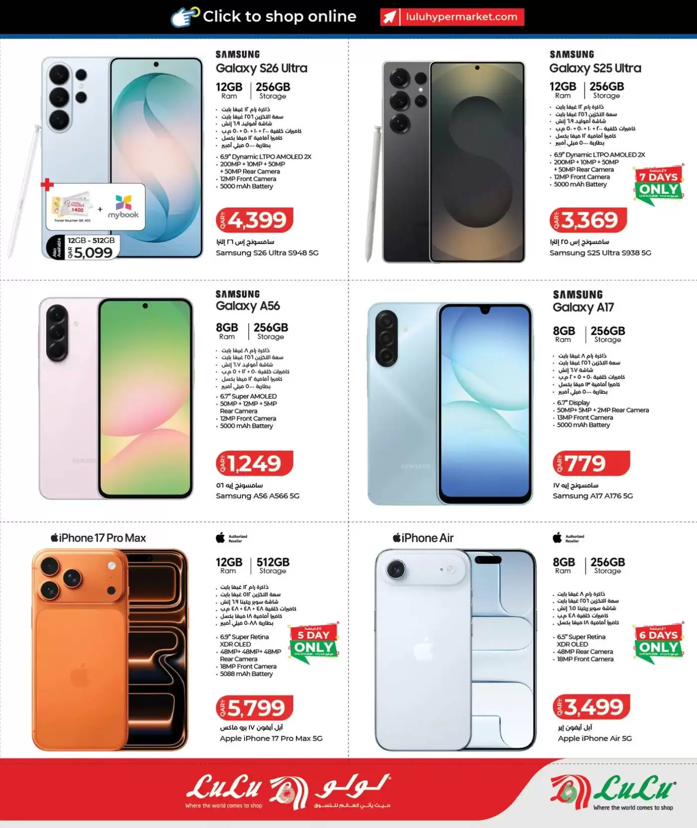 ملاحظة هامة: العروض سارية حتى نفاد الكمية، وبعض العروض محددة بـ "7 أيام فقط". يُنصح بزيارة أقرب فرع لولو (المطار، الغرافة، لوسيل، أو المسيلة) مبكراً لضمان الحصول على أفضل الأجهزة قبل نفاد المخزون.
